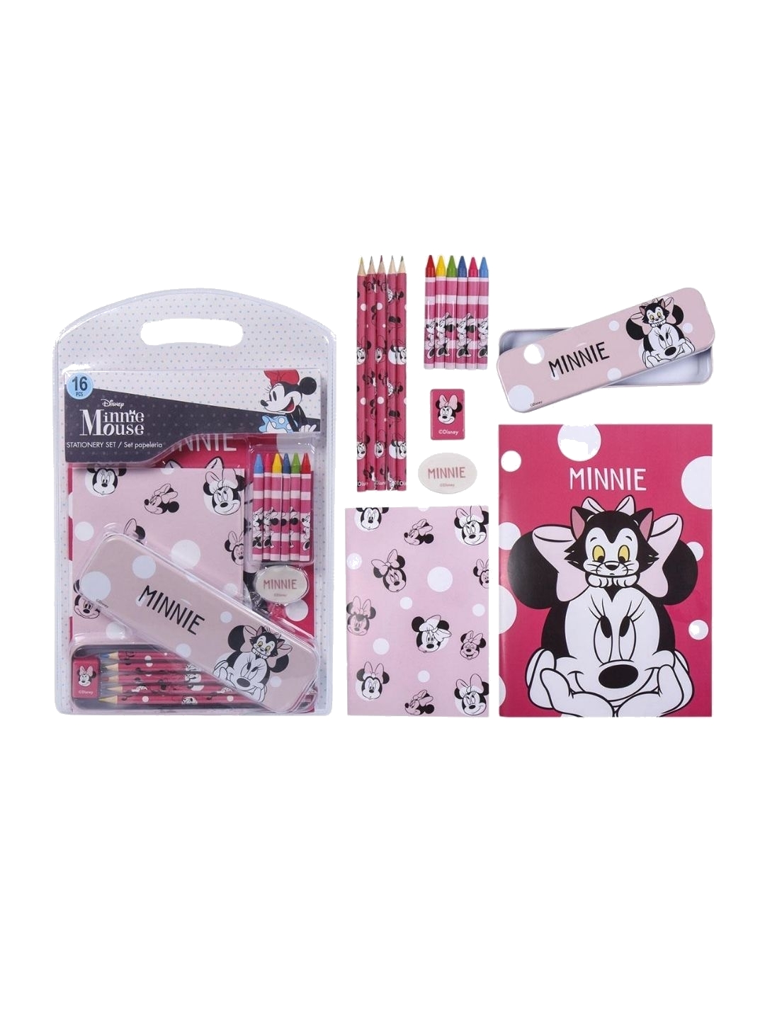 Αυτό το εκπληκτικό σετ γραφικής ύλης Disney Minnie είναι το τέλειο δώρο για κάθε θαυμαστή της Disney και της Minnie Mouse! Ανακαλύψτε τώρα μια πληθώρα ειδών από τις αγαπημένες σας σειρές μόνο στο Nerdom! Αυτό το σετ περιλαμβάνει όλα όσα χρειάζεστε για να γράψετε, να σχεδιάσετε και να οργανώσετε τις σκέψεις σας με στυλ Minnie. Η πρακτική κασετίνα θα κρατήσει όλα τα αντικείμενά σας τακτοποιημένα, ενώ τα δύο τετράδια σε μεγέθη A4 και A5 είναι ιδανικά για σημειώσεις και σχέδια. Το μολύβι HB, οι τέσσερις ξυλομπογιές, η γόμα και οι έξι κηρομπογιές σας προσφέρουν όλα τα απαραίτητα για να απελευθερώσετε τη δημιουργικότητά σας. Είναι ένα επίσημο προϊόν που θα ενθουσιάσει μικρούς και μεγάλους!