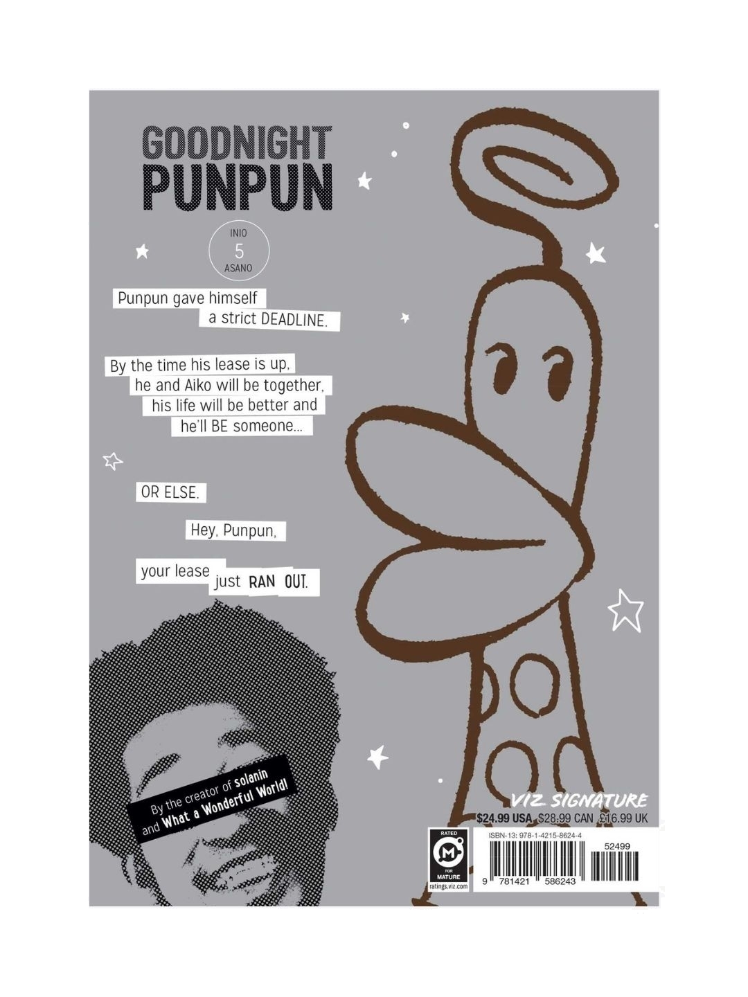Μια σκοτεινή ιστορία ενηλικίωσης όπου η καθημερινότητα δεν προσφέρει παρηγοριά, αλλά πόνο. Στο πέμπτο τόμο του Goodnight Punpun, ο Punpun Onodera συνεχίζει να παλεύει με την απόγνωση και τις απογοητεύσεις της ζωής του. Οι γονείς του διαλύονται, ο πατέρας του καταλήγει στη φυλακή, και η μητέρα του νοσηλεύεται. Ο ίδιος αναγκάζεται να ζήσει με τον αποτυχημένο θείο του, ενώ ελπίζει ακόμα πως ο έρωτάς του για την Aiko θα τον σώσει από τη μοναξιά και την αβεβαιότητα.