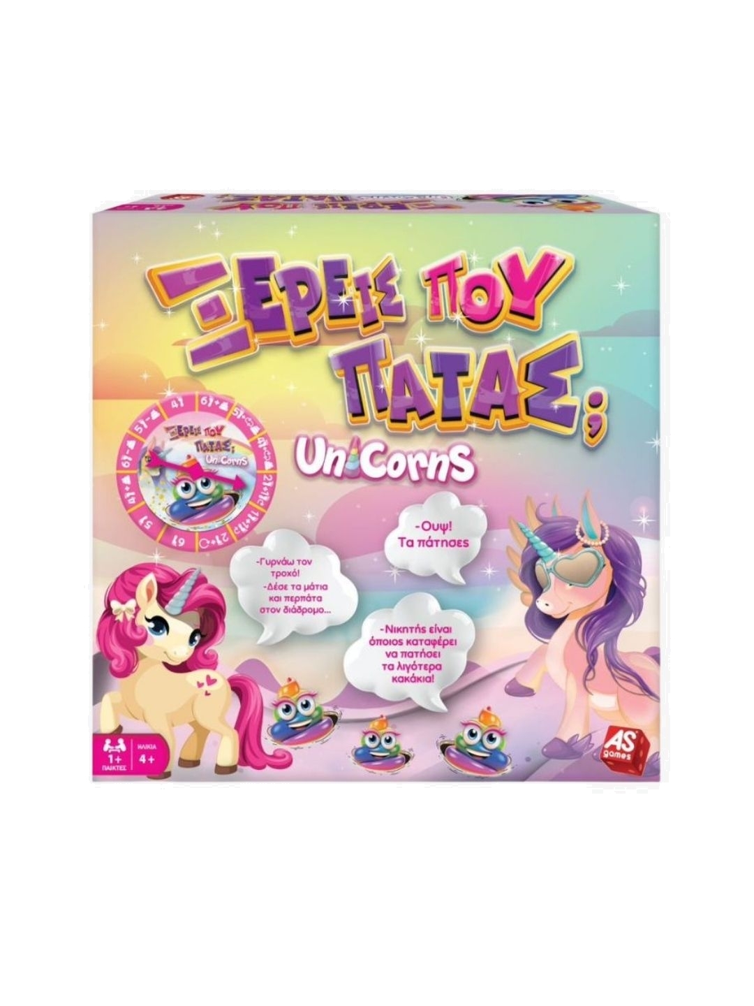 Στο Ξέρεις Που Πατάς Unicorn, οι παίκτες πρέπει να περπατήσουν με κλειστά τα μάτια, προσέχοντας να μην πατήσουν τα πολύχρωμα unicorn κακάκια που βρίσκονται διάσπαρτα στον διάδρομο. Το παιχνίδι είναι γεμάτο γέλιο και διασκέδαση, ιδανικό για παιδικά πάρτι, αλλά και για ενήλικες που θέλουν να συμμετάσχουν. Ο τροχός καθορίζει τα βήματα, ενώ οι παίκτες προσπαθούν να ολοκληρώσουν τη διαδρομή με όσο το δυνατόν λιγότερα «ατυχήματα». Ο παίκτης που πατάει τα λιγότερα κακάκια είναι ο νικητής, προσφέροντας απρόβλεπτες και αστείες στιγμές σε κάθε γύρο.