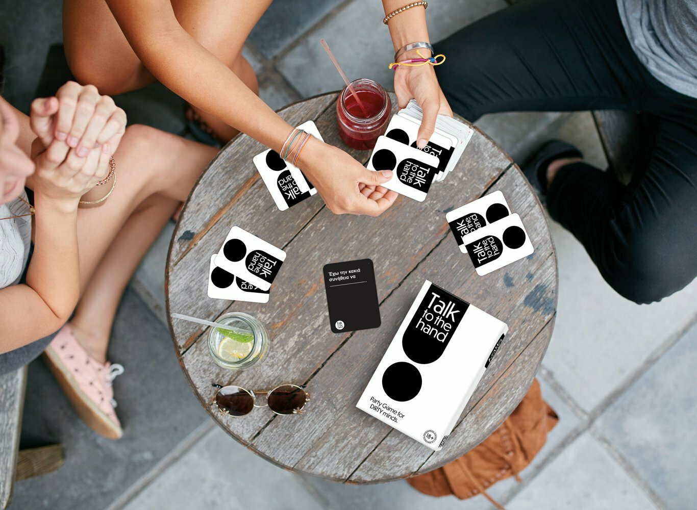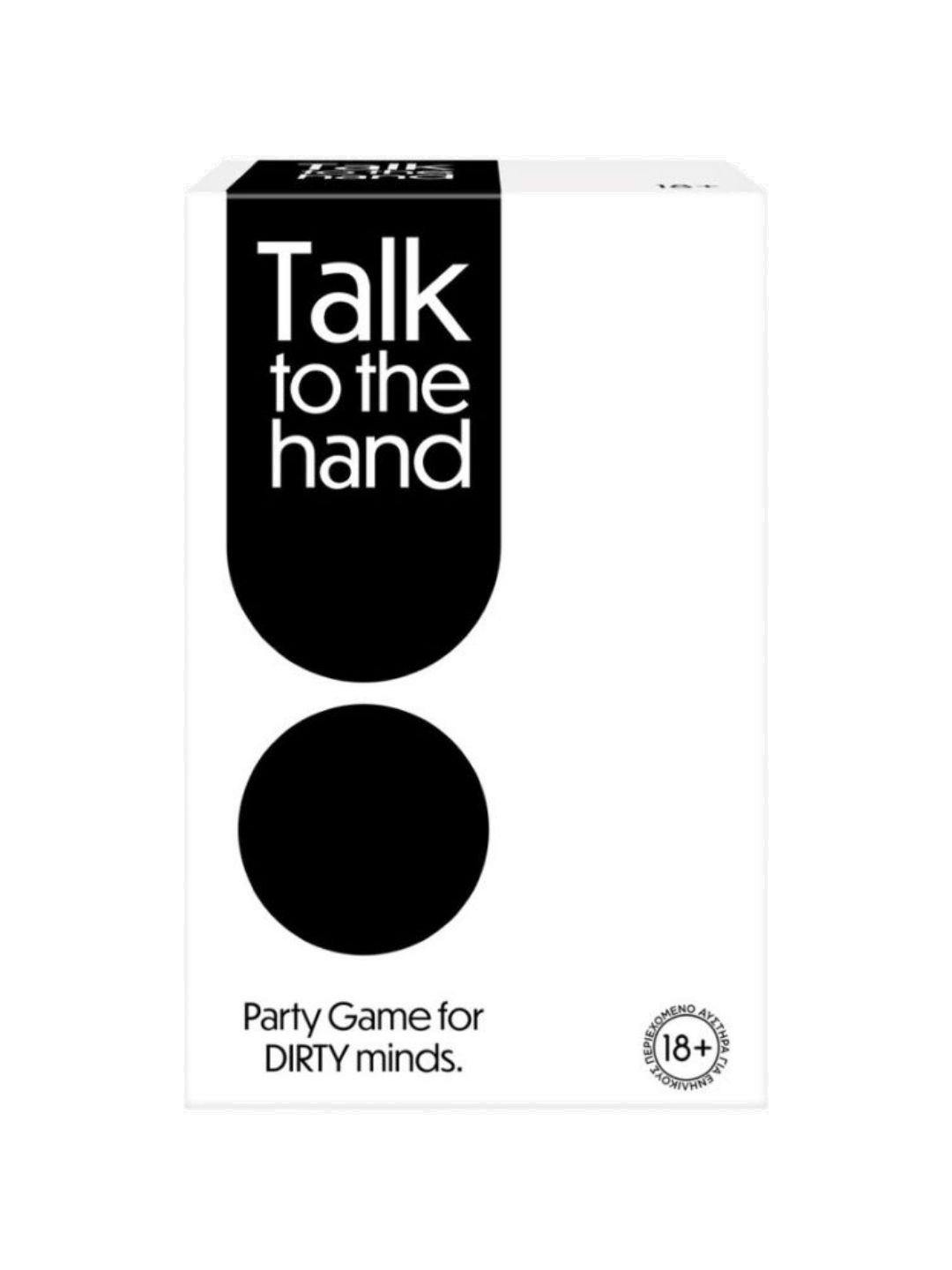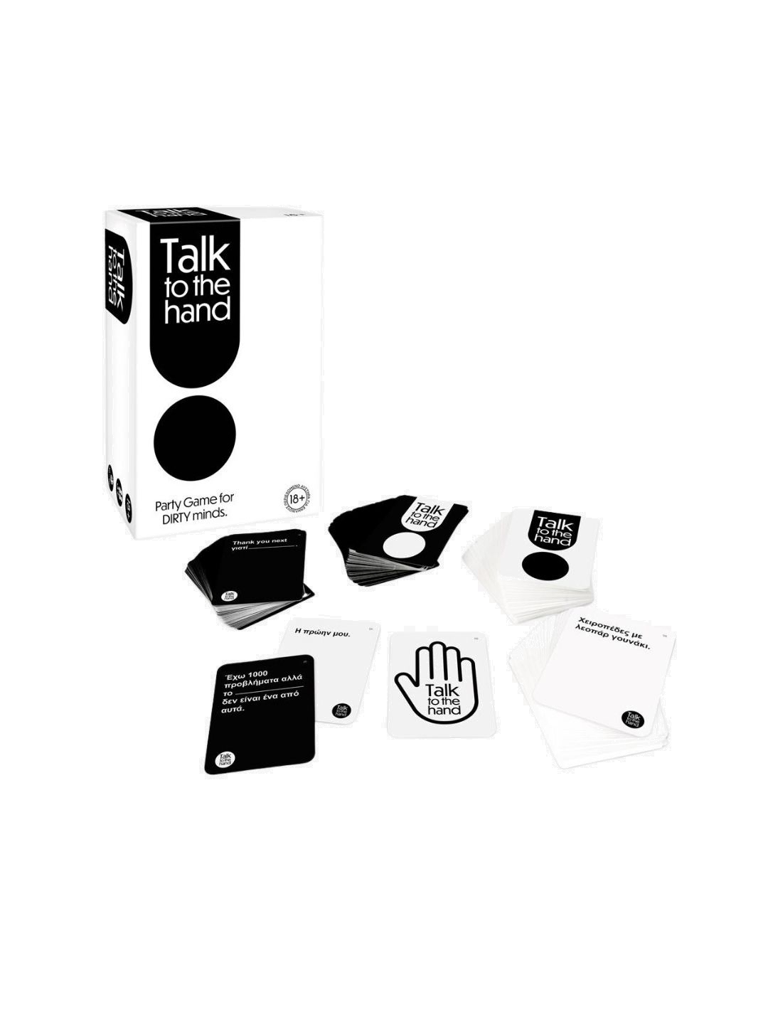 Ετοιμαστείτε για γέλιο και προκλήσεις με το Talk To The Hand, το απόλυτο παιχνίδι καρτών για βράδια με φίλους, γενέθλια ή ένα ατέλειωτο Σαββατοκύριακο! Ένα γρήγορο, εύκολο και άκρως προκλητικό παιχνίδι, ιδανικό για όσους δεν θέλουν να διαβάζουν κανόνες. Το παιχνίδι λειτουργεί με το σύστημα μαύρες και λευκές κάρτες: το Αφεντικό ρωτά με μία μαύρη κάρτα και οι υπόλοιποι απαντούν με την πιο αστεία λευκή κάρτα τους. Το Αφεντικό αποφασίζει ποια απάντηση είναι η πιο αστεία και ο παίκτης που την έδωσε κερδίζει τη μαύρη κάρτα. Ο παίκτης με τις περισσότερες μαύρες κάρτες στο τέλος κερδίζει!