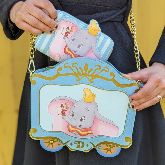 «Dumbo! Το ένατο θαύμα του σύμπαντος! Ο μόνος ελέφαντας που πετάει στον κόσμο!» Προς τιμήν της 80ης επετείου του Dumbo της Disney, η Loungefly δημιούργησε μια εκπληκτική νέα συλλογή! Η ιστορία ακολουθεί τον Dumbo, έναν νεαρό ελέφαντα που γεννήθηκε με τεράστια αυτιά και ο οποίος μαθαίνει ότι ακριβώς αυτά που τον κρατούσαν κάτω, θα τον ανεβάσουν όλο και πιο ψηλά – κυριολεκτικά! Με τη βοήθεια του φίλου του, του Timothy Q. Mouse, ο Dumbo μετατρέπεται από το αντικείμενο γέλιου του τσίρκου στο πρωταγωνιστικό αξιοθέατο, καθώς αξιοποιεί τη δύναμη των μεγάλων αυτιών του για να πετάξει σε όλο τον κόσμο. Η ιστορία της ταινίας μας αφήνει ένα διαχρονικό μάθημα – αγκαλιάστε αυτό που σας κάνει διαφορετικούς. Σχεδιασμένη να μοιάζει με ένα από τα βαγόνια του τρένου του τσίρκου, αυτή η τσάντα διαθέτει τον Dumbo και τον Timothy στο εσωτερικό. Οι ρόδες του βαγονιού περιστρέφονται κιόλας! Για το κύριο αξιοθέατο της συλλογής αξεσουάρ σας, μην ψάχνετε άλλο!