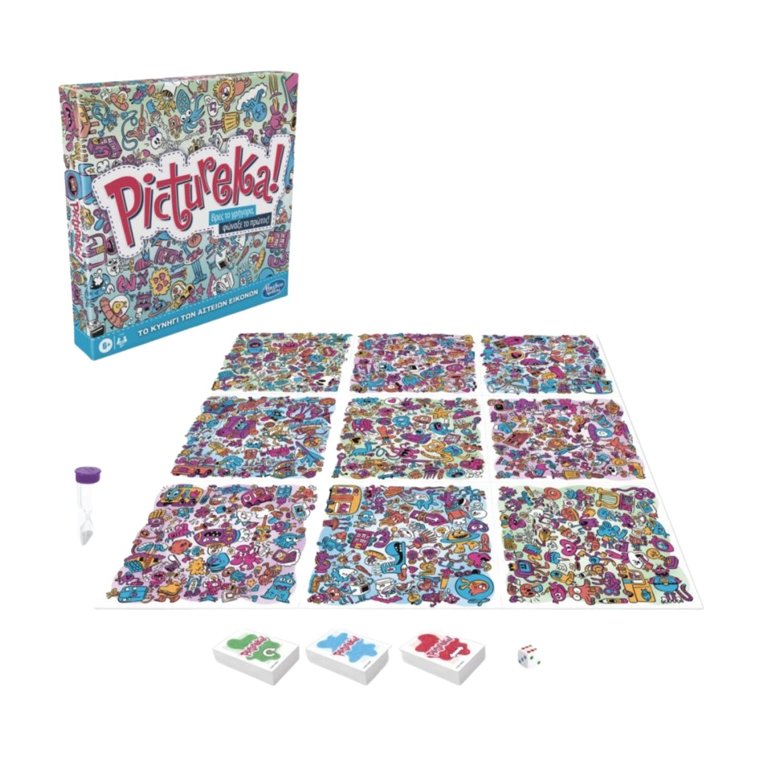 Pictureka! Το κλασικό διασκεδαστικό παιχνίδι με τις εικόνες επιστρέφει ανανεωμένο! ΟΙ παίκτες προσπαθούν να βρουν πρώτοι τις απαντήσεις! Ποιος θα είναι ο πρώτος παίκτης που θα βρει έναν δεινόσαυρο σε μία από τις κάρτες; Η αγωνία μεγαλώνει σε κάθε γύρο, καθώς οι παίκτες επιλέγουν από τις μπλε, τις κόκκινες και τις πράσινες κάρτες αποστολής - κάθε χρώμα αντιστοιχεί σε διαφορετική κατηγορία παιχνιδιού! Οι ρυθμοί γίνονται καταιγιστικοί καθώς κάθε παίκτης πρέπει να βρει την εικόνα και να φωνάξει πρώτος «Pictureka»! Αυτό το διασκεδαστικό οικογενειακό επιτραπέζιο παιχνίδι προορίζεται για παιδιά ηλικίας 6 ετών και άνω και αποτελεί ιδανική επιλογή για μια οικογενειακή βραδιά στο σπίτι!