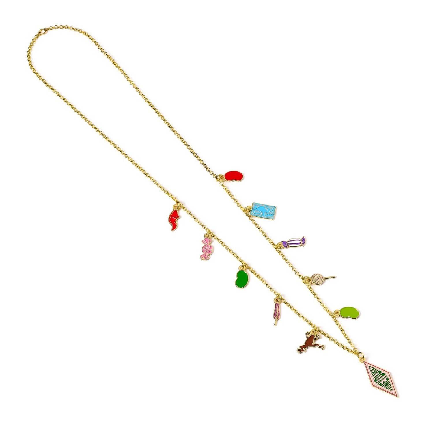 Αυτό το χαριτωμένο κολιέ Honeydukes διαθέτει μενταγιόν με το διάσημο λογότυπο του καταστήματος, είναι επικαλυμμένο με χρυσό και έχει λεπτομέρειες με σμάλτο. Για μια ολοκληρωμένη εμφάνιση, συνδυάστε το με τα σκουλαρίκια-καρφάκια που διατίθενται ξεχωριστά.