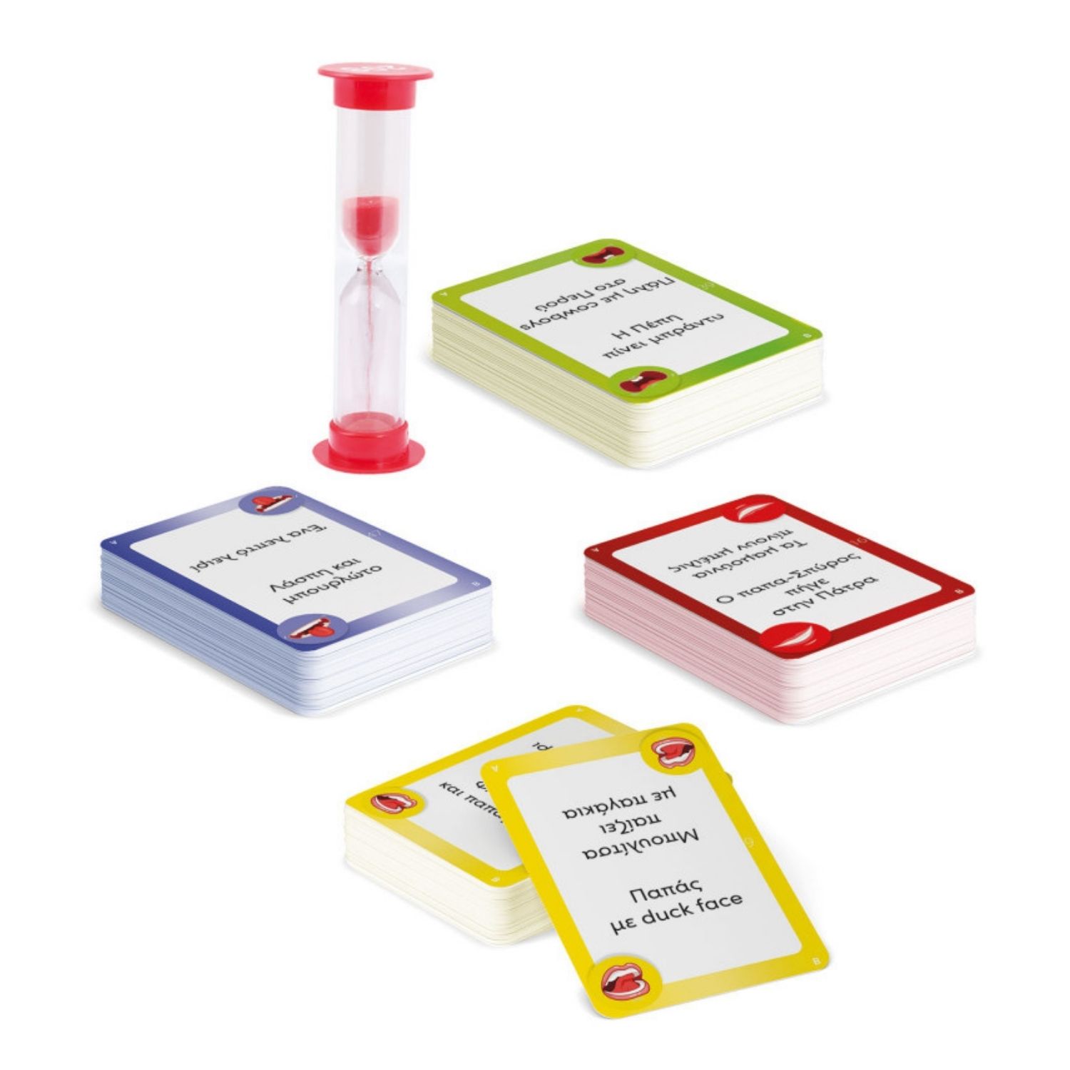 Γέλα όσο θέλεις, αλλά προσπάθησε να μιλήσεις με το στόμα ανοιχτό! Αυτό το μοναδικό παιχνίδι προσφέρει απίστευτες προκλήσεις: μπορείς να μιλήσεις με τη γλώσσα έξω ή να προσπαθήσεις να μεταφέρεις λέξεις με χαμόγελο; Ο χρόνος μετρά αντίστροφα, και ο στόχος σου είναι να καταλάβεις τι λέει ο συμπαίκτης σου και να κερδίσεις όσες περισσότερες κάρτες μπορείς. Πολύ γέλιο και διασκέδαση περιμένουν εσένα και τους φίλους σου!
