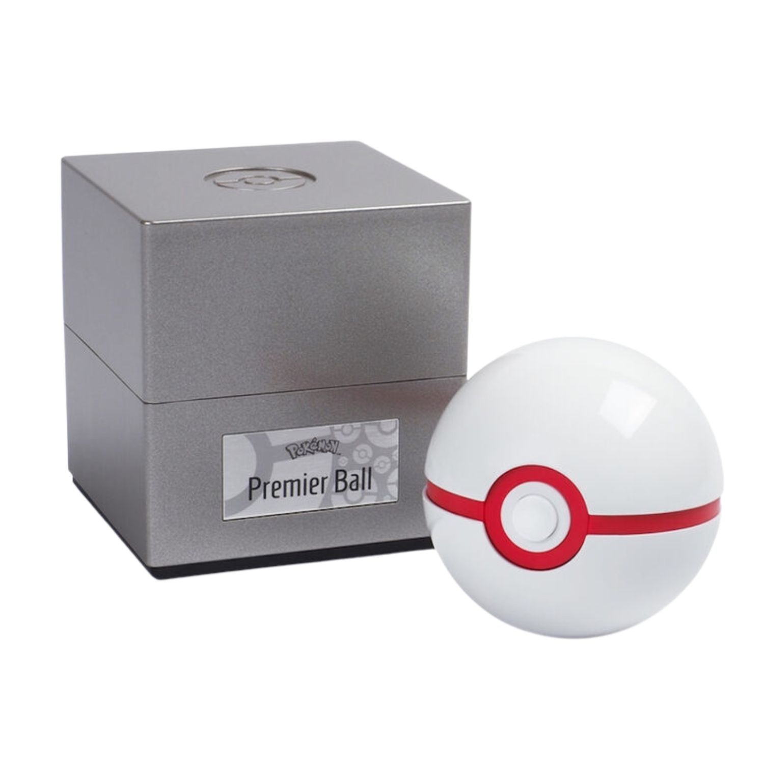 Εξαιρετικά ακριβές, ηλεκτρονικό αντίγραφο της Premier Ball, μια παραλλαγή της κλασικής Poke Ball που παρουσιάστηκε στα Ruby και Sapphire, με λεπτομερές μεταλλικό κέλυφος και κορυφαίο βαμμένο φινίρισμα. Η λειτουργία ανίχνευσης εγγύτητας κάνει το κουμπί λειτουργίας να φωτίζεται πιο έντονα καθώς το χέρι σας πλησιάζει την Premier Ball. Το άνοιγμα της θήκης ανασηκώνει την πλατφόρμα στην οποία βρίσκεται η Premier Ball, ώστε να μπορεί να χρησιμοποιηθεί ως θήκη προβολής. Αυτή η Premier Ball είναι το τέλειο δώρο για κάθε λάτρη των Pokemon.