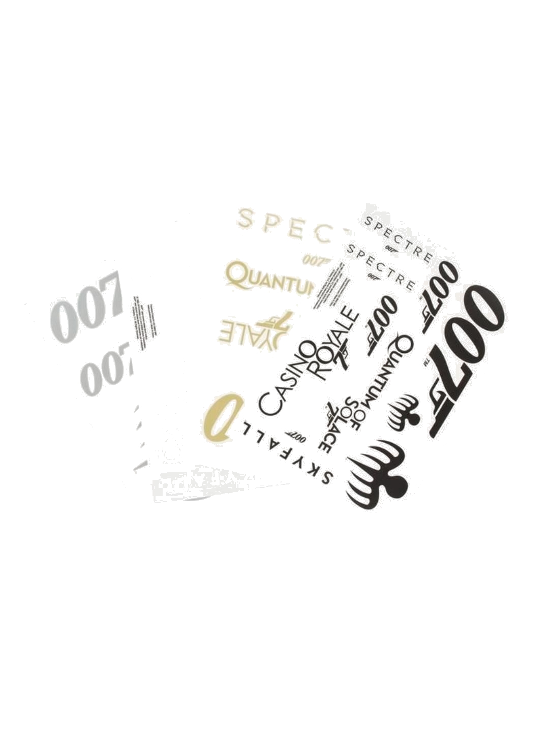 Εντελώς καινούργιο σετ αυτοκόλλητων για gadget, εμπνευσμένο από τον κόσμο του James Bond 007. Το σετ περιλαμβάνει 4 φύλλα αυτοκόλλητων, τα οποία είναι αδιάβροχα και επανατοποθετούμενα.