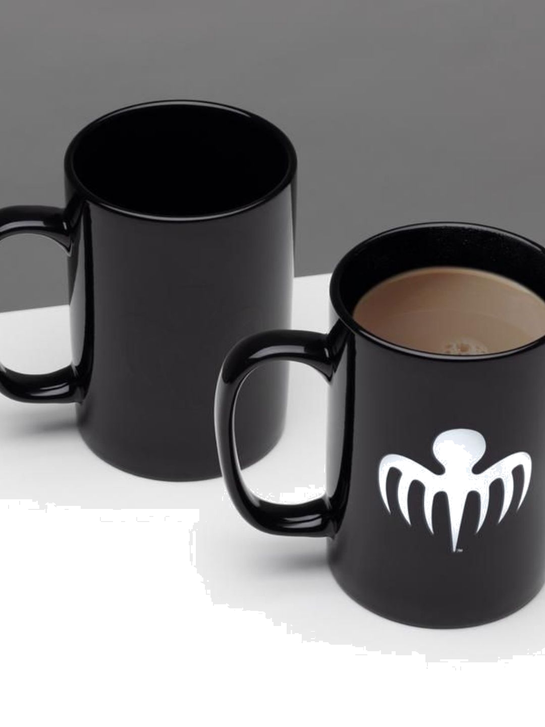 - Θερμοαντιδραστική κούπα που εμφανίζει το λογότυπο SPECTRE με το ζεστό ρόφημα