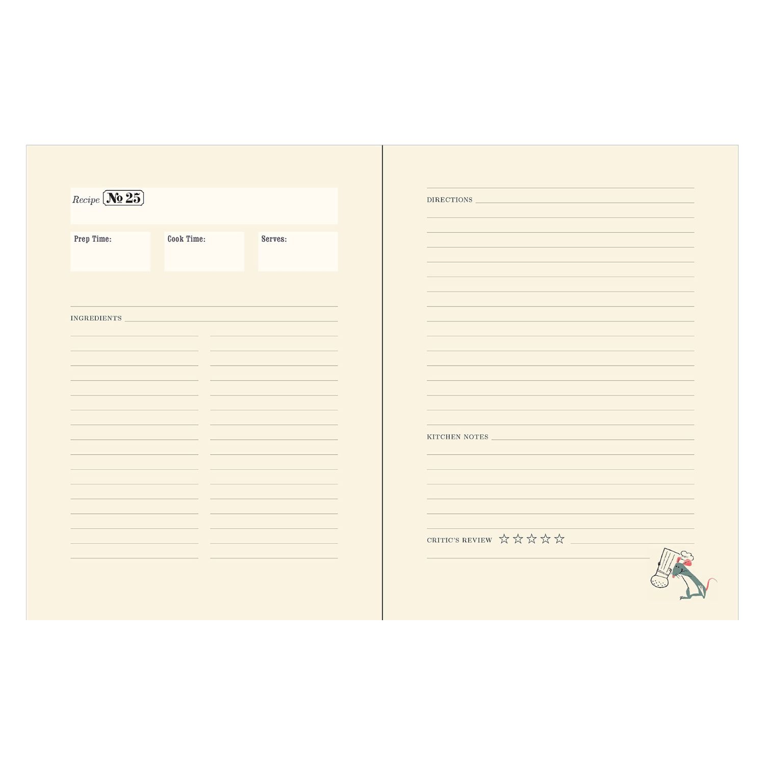 Καταγράψτε τις αγαπημένες σας μαγειρικές δημιουργίες σε αυτό το αναμνηστικό ημερολόγιο συνταγών εμπνευσμένο από την κλασική ταινία της Pixar, Ratatouille.