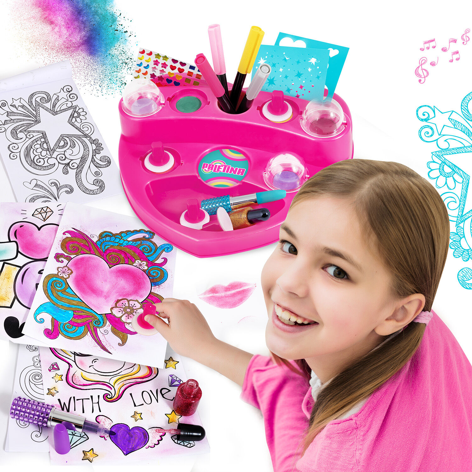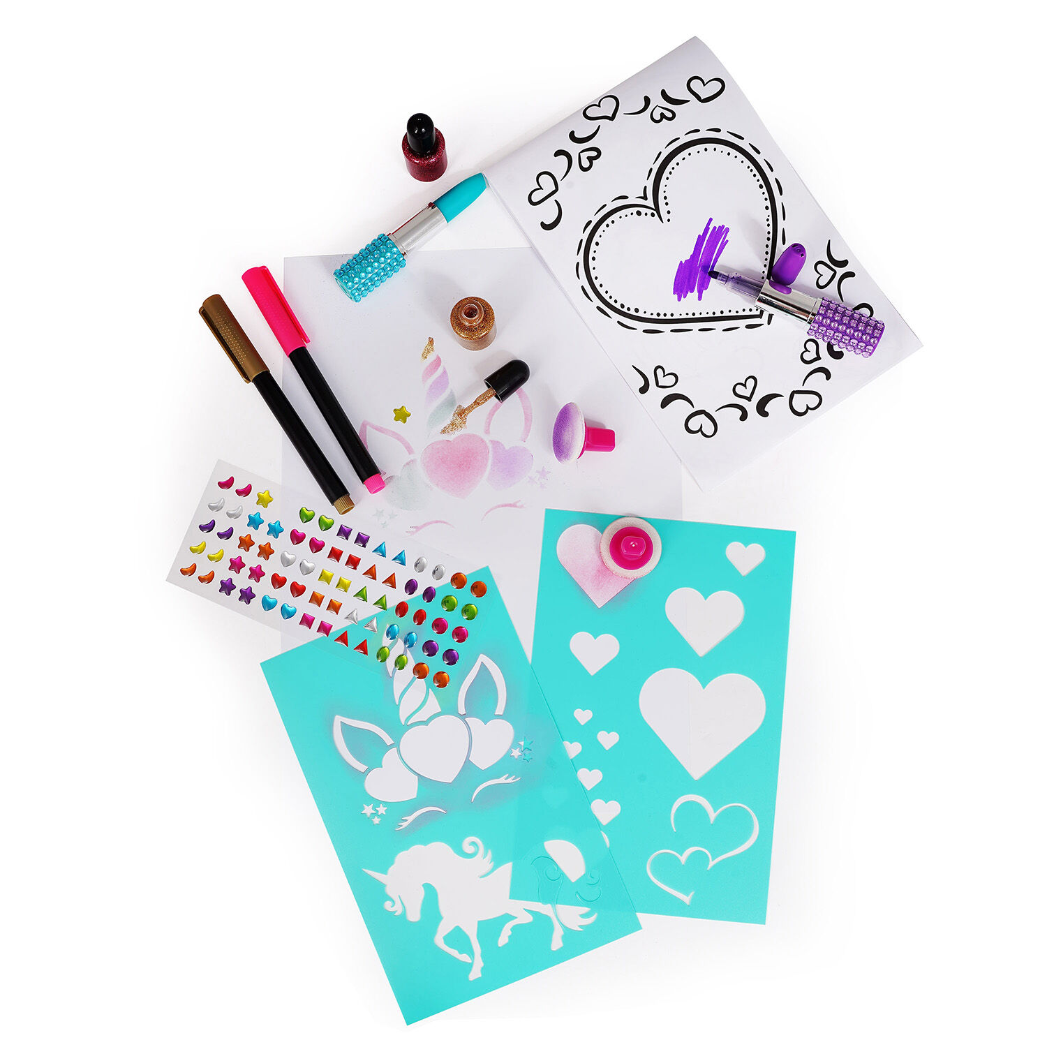 Μια φανταστική παλέτα για τη ζωγραφική, με σχήμα καρδιάς που προσφέρει ατελείωτες δυνατότητες για δημιουργία μαγικών σχεδίων! Περιλαμβάνει όλα όσα χρειάζεται το παιδί για ασταμάτητη ζωγραφική με πούδρες, χρώματα, πινέλα, glitter, αυτοκόλλητα gems και stencils. Από μονόκερους, αστέρια, καρδιές μέχρι μουσικά σύμβολα, οι επιλογές είναι ατελείωτες. Το αποτέλεσμα θα είναι μοναδικό, γεμάτο χρώματα και λάμψη!