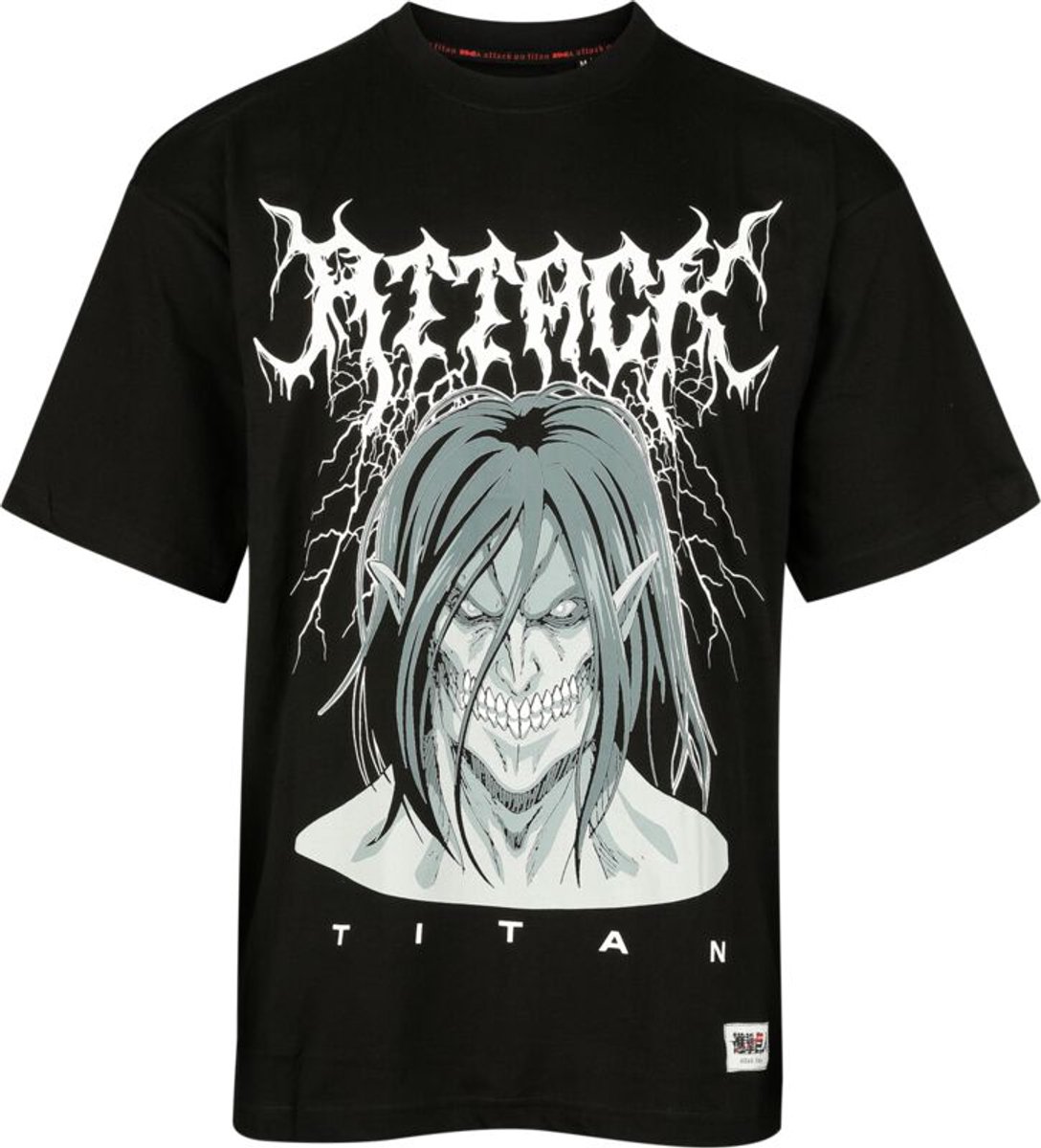 Το Attack On Titan Black T-Shirt σας βυθίζει στον συναρπαστικό κόσμο του Attack on Titan, με ένα επίσημα αδειοδοτημένο t-shirt που απεικονίζει τον εμβληματικό Titan, Eren. Το μαύρο σχέδιο περιλαμβάνει ισχυρή εικόνα του Titan, περιβαλλόμενη από αστραπές, μαζί με το γκοθικό λογότυπο “Attack Titan”, ιδανικό για να εκφράσετε το πάθος σας για το anime με στυλ.