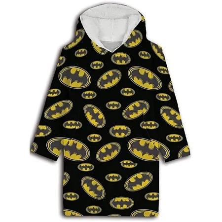 Αυτό το Batman hoodie blanket είναι το τέλειο δώρο για κάθε φαν των σούπερ ήρωων. Με το εμβληματικό λογότυπο του Batman σε σκούρο φόντο, αυτό το υπερμεγέθες κουβερτοφόρεμα συνδυάζει στιλ και άνεση. Η απαλή εσωτερική πλευρά σε κρατάει ζεστό, ενώ η ευρύχωρη κουκούλα και η άνετη εφαρμογή εξασφαλίζουν την απόλυτη εμπειρία χαλάρωσης τις κρύες μέρες.
