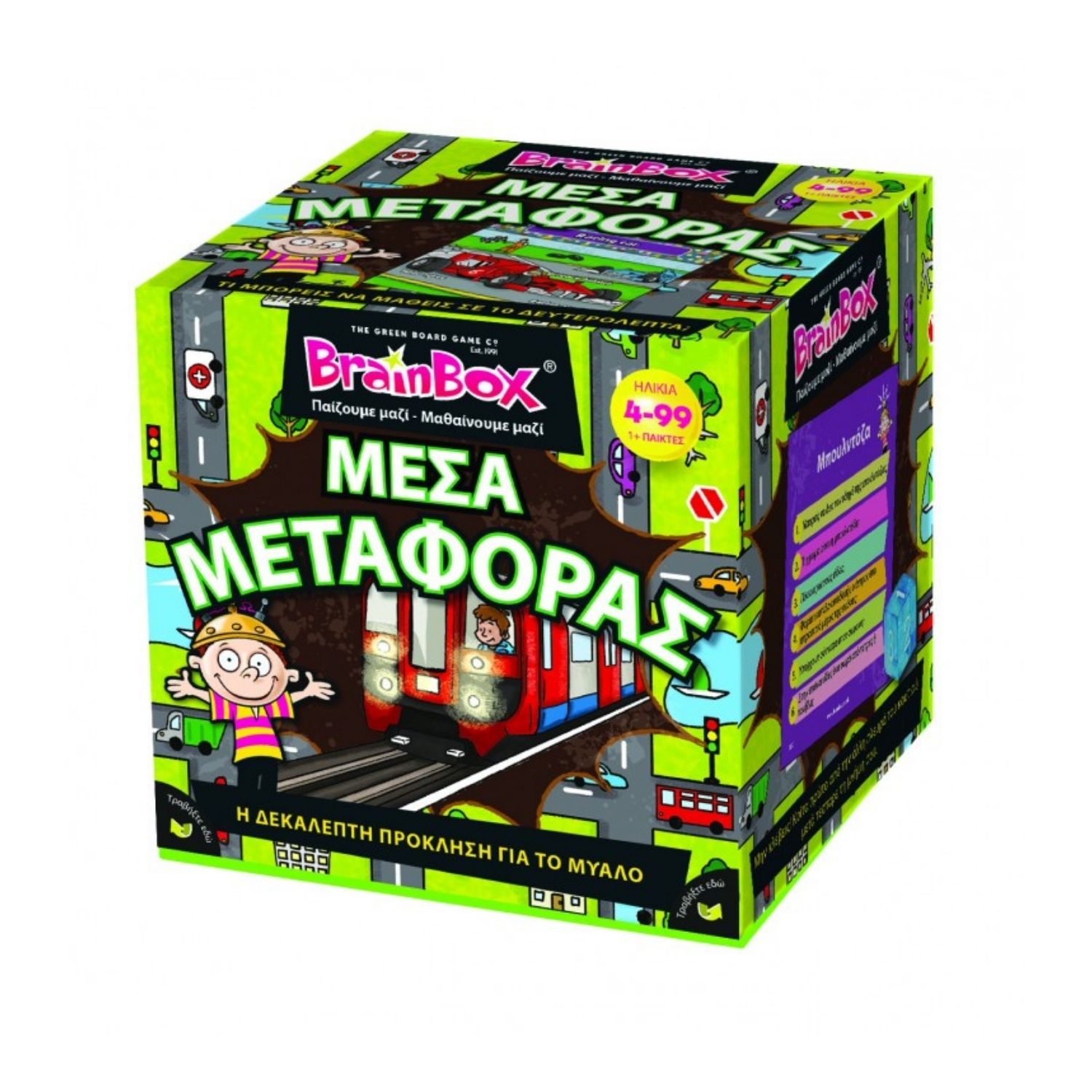 Ποιο είναι το αγαπημένο σου μέσο μεταφοράς; Παίξε με αυτό το BrainBox και διάλεξε με τι θα σου άρεσε να μετακινείσαι. Σχεδιασμένο έτσι ώστε οι γονείς να παίζουν μαζί με τα παιδιά τους, αυτό το απίθανο παιχνίδι βοηθά στη βελτίωση της παρατηρητικότητας και των μνημονικών ικανοτήτων. Από την καμήλα ως το κανό, από το έλκηθρο ως το καρτ, από τη σχεδία ως τον πύραυλο, αυτό το BrainBox ταξιδεύει στη στεριά, τη θάλασσα και τον αέρα, προσφέροντας διασκέδαση για όλη την οικογένεια. Επιβιβαστείτε και αναποδογυρίστε την κλεψύδρα για να μάθετε την κάρτα απ’ έξω σε 10 δευτερόλεπτα. Στη συνέχεια, ρίξτε το ζάρι και απαντήστε στην αντίστοιχη ερώτηση. Αν απαντήσετε σωστά, κρατάτε την κάρτα, ενώ αν απαντήσετε λάθος, η κάρτα επιστρέφει στο BrainBox. Ο σκοπός του παιχνιδιού είναι να μαζέψετε τις περισσότερες κάρτες μέσα σε 10 λεπτά.