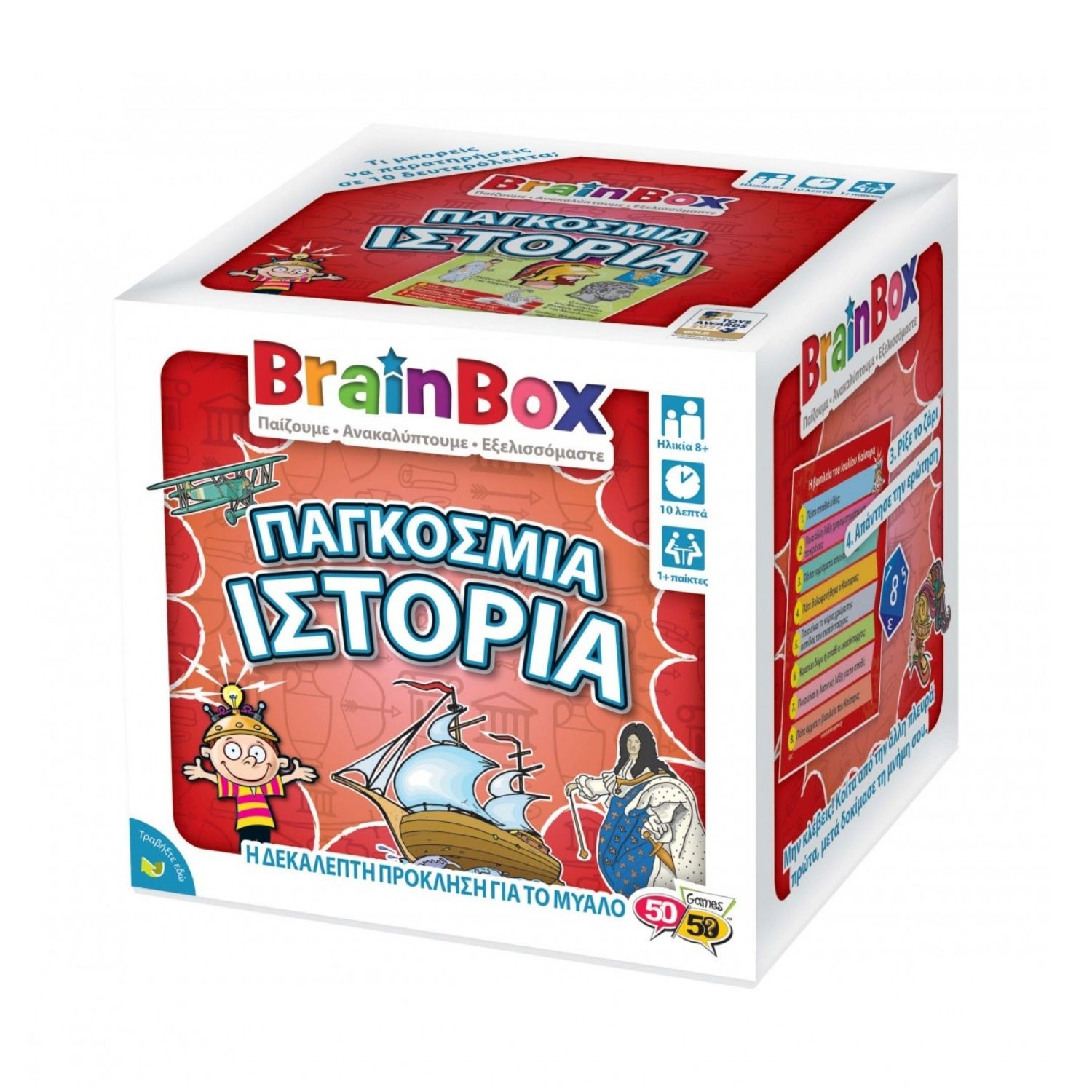 Ανακάλυψε τα πιο συναρπαστικά γεγονότα της παγκόσμιας ιστορίας μέσα από το εκπαιδευτικό παιχνίδι BrainBox Παγκόσμια Ιστορία! Μάθε για σημαντικές εποχές, πολιτισμούς και γεγονότα που διαμόρφωσαν τον κόσμο όπως τον γνωρίζουμε σήμερα. Διάλεξε μια κάρτα, μελέτησέ την για 10 δευτερόλεπτα και στη συνέχεια δοκίμασε τη μνήμη σου απαντώντας σωστά στην ερώτηση που αντιστοιχεί στο ρίξιμο του ζαριού. Ένα διασκεδαστικό παιχνίδι γνώσεων που ενώνει όλη την οικογένεια μέσα από την ιστορία!