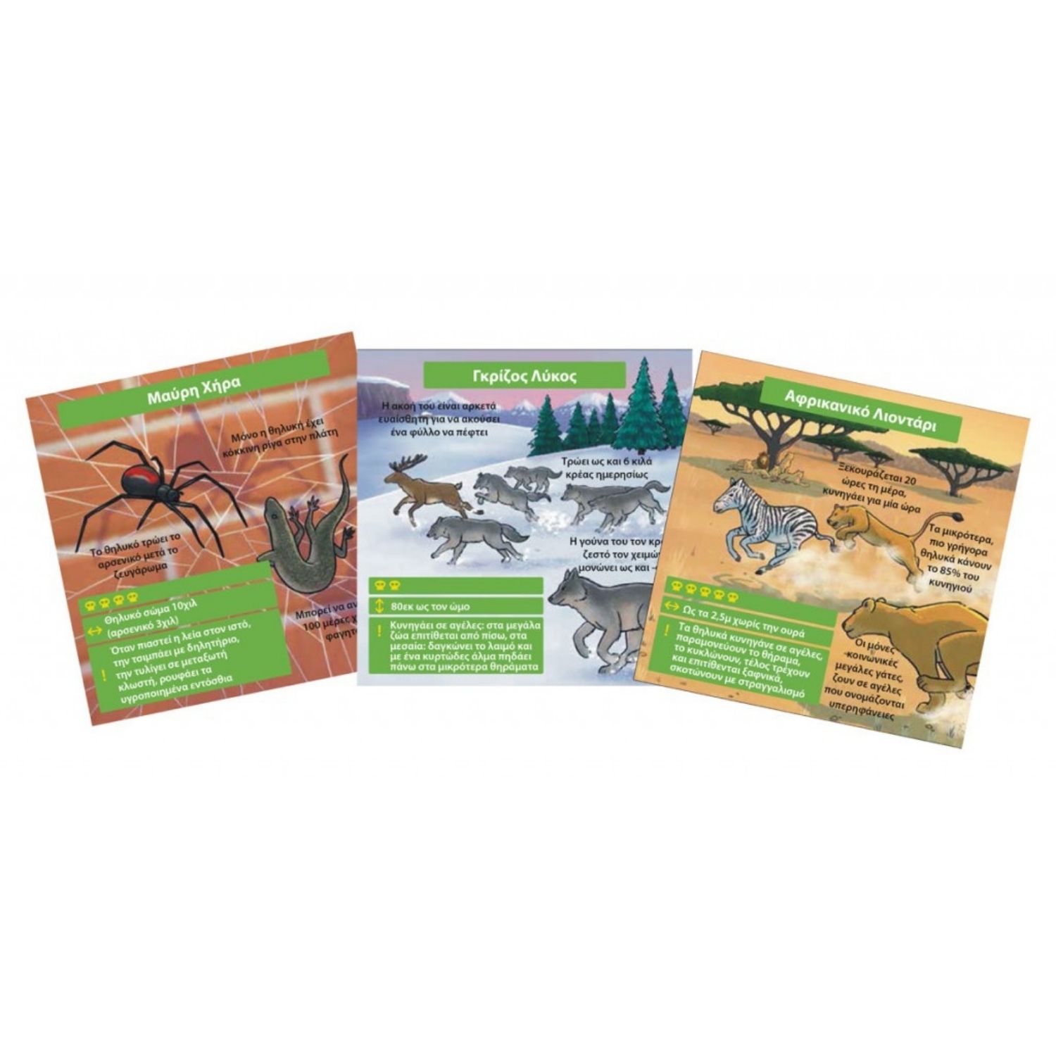 Πρόσεχε! Μέσα σε αυτό το BrainBox βρίσκονται μερικά από τα πιο επικίνδυνα πλάσματα του πλανήτη, έτοιμα να δοκιμάσουν τις παρατηρητικές και μνημονικές σου ικανότητες! Από τον γκρίζο λύκο και τον μεγάλο λευκό καρχαρία, μέχρι τον χρυσό δηλητηριώδη βάτραχο, την πολική αρκούδα, τη βασιλική κόμπρα και την όρκα, το παιχνίδι αυτό σε μεταφέρει στον άγριο κόσμο των θηρευτών. Δοκίμασε να απομνημονεύσεις τις κάρτες, απάντησε σωστά και μάζεψε όσο το δυνατόν περισσότερες μέσα σε 10 λεπτά. Ένα εκπαιδευτικό και συναρπαστικό παιχνίδι για μικρούς και μεγάλους φυσιολάτρες!