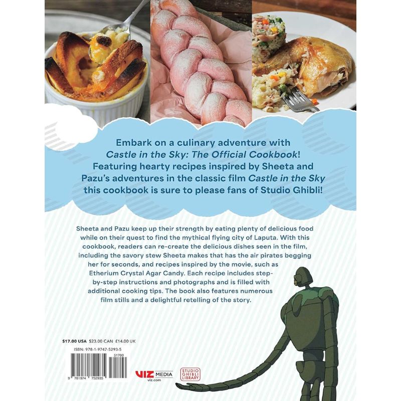 Καθώς οι ήρωες διατηρούν τις δυνάμεις τους αναζητώντας τη μυθική ιπτάμενη πόλη της Laputa, το βιβλίο επιτρέπει στους θαυμαστές να αναδημιουργήσουν πιάτα που εμφανίζονται στην ταινία, όπως το αρωματικό στιφάδο της Sheeta, που κάνει τους αεροπειρατές να ζητούν δεύτερη μερίδα, αλλά και εμπνευσμένες δημιουργίες όπως το Etherium Crystal Agar Candy. Κάθε συνταγή συνοδεύεται από αναλυτικές οδηγίες βήμα προς βήμα, φωτογραφίες, χρήσιμες μαγειρικές συμβουλές, καθώς και πλούσιο εικονογραφικό υλικό με στιγμιότυπα από την ταινία και μια ευχάριστη αναδιήγηση της ιστορίας, καθιστώντας το βιβλίο ιδανικό τόσο για μαγείρεμα όσο και για συλλογή.