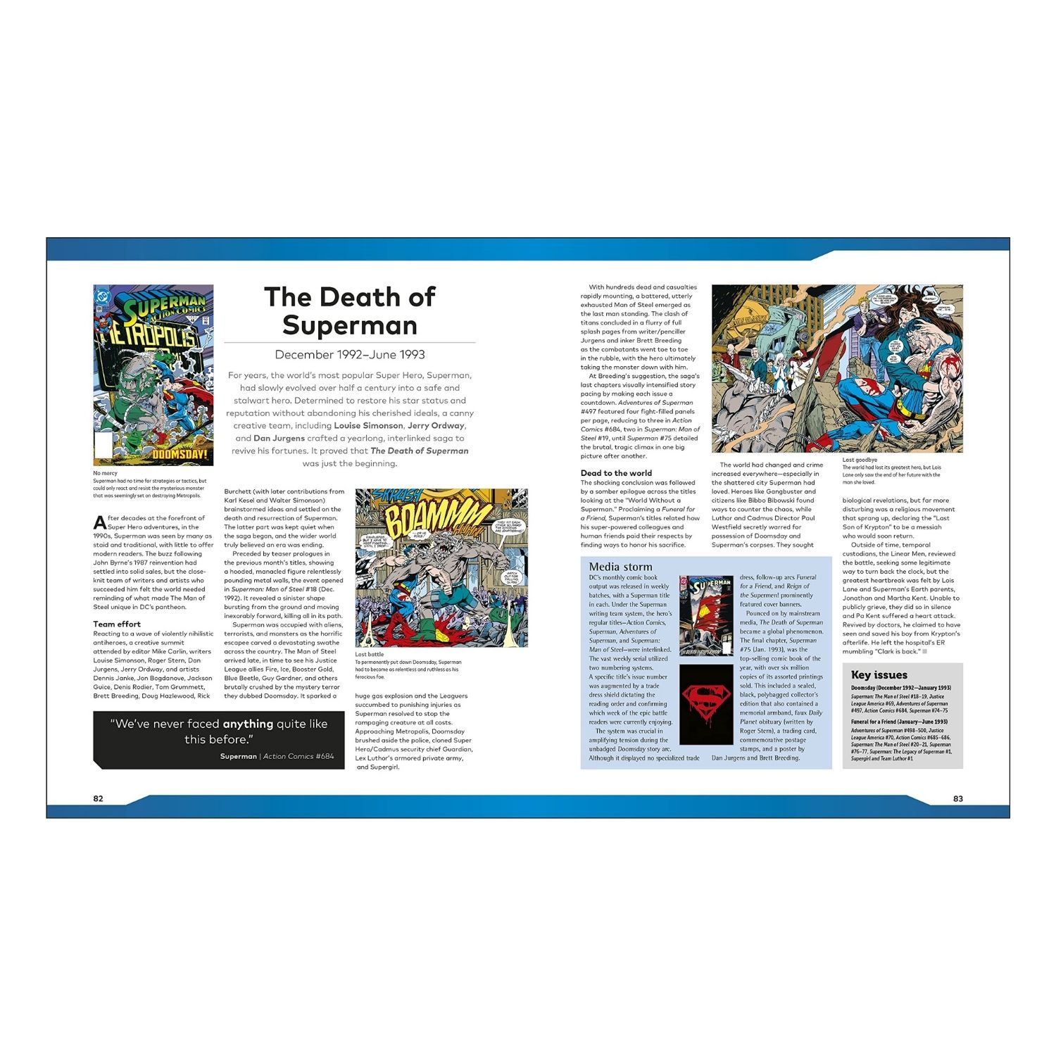 Τα δοκίμια των ειδικών αποκαλύπτουν το πλαίσιο, τις συνδέσεις και τις συνέπειες περισσότερων από 80 κομβικών γεγονότων, παρουσιάζοντας διασταυρούμενες σειρές και βασικά ζητήματα, που ζωντανεύουν μέσα από εκπληκτικά έργα τέχνης και παρουσιάζονται σε πολυτελή μορφή. Σε όλη την 80χρονη ιστορία της DC Comics, αυτές είναι οι στιγμές που έχουν σημασία, οι ιστορίες που έκαναν τη διαφορά.
