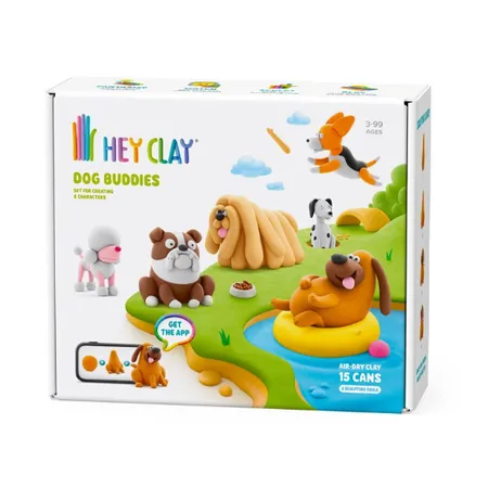Δημιούργησε τα δικά σου χαριτωμένα σκυλάκια με πηλό που στεγνώνει φυσικά στον αέρα χωρίς ψήσιμο. Το σετ Dog Buddies περιλαμβάνει 15 δοχεία πολύχρωμου, μαλακού πηλού και προσφέρει ατελείωτη δημιουργική διασκέδαση για παιδιά από 3 ετών και άνω. Μέσα από τη διαδραστική εφαρμογή Hey Clay app, οι μικροί καλλιτέχνες ακολουθούν εύκολα βήματα για να πλάσουν σκυλάκια, αναπτύσσοντας τη λεπτή κινητικότητα, τη δημιουργικότητα, τη φαντασία και τη συγκέντρωσή τους με απόλυτη ασφάλεια, ενώ οι φιγούρες μπορούν να χρησιμοποιηθούν για παιχνίδι ή διακόσμηση.