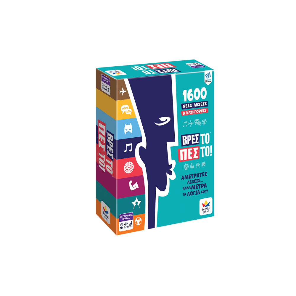 Το κλασικό και αγαπημένο παιχνίδι λέξεων επιστρέφει ανανεωμένο με νέες προκλήσεις και περισσότερη διασκέδαση για όλη την παρέα! Με 8 διαφορετικές κατηγορίες που κρατούν αμείωτο το ενδιαφέρον, το Βρες το Πες το! δοκιμάζει την ευστροφία, την ταχύτητα και τη συνεργασία της ομάδας σου.