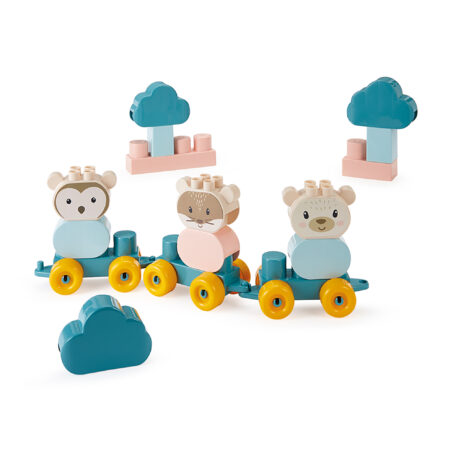 Έτοιμοι για ταξίδι! Συμμετάσχετε με τους 3 μικρούς φίλους σας σε αυτό το τρενάκι σε μαλακά χρώματα για μεγάλες περιπέτειες! Το παιδί μπορεί να χτίσει το δικό του τρενάκι και τη γοητευτική εξοχή του. Μετά την ολοκλήρωση της περιπέτειας, το τρενάκι διπλώνει εύκολα στο κουτί μεταφοράς του.