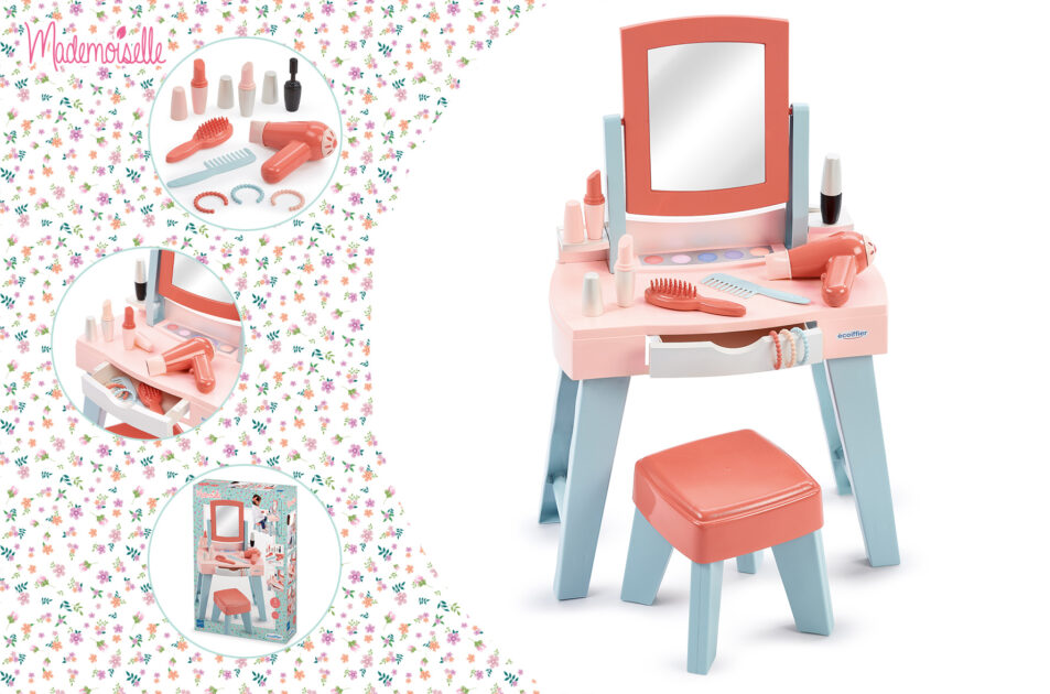 Πρακτικό και γοητευτικό, το τραπέζι διαθέτει συρτάρι για αποθήκευση όλων των παιχνιδιάρικων καλλυντικών: