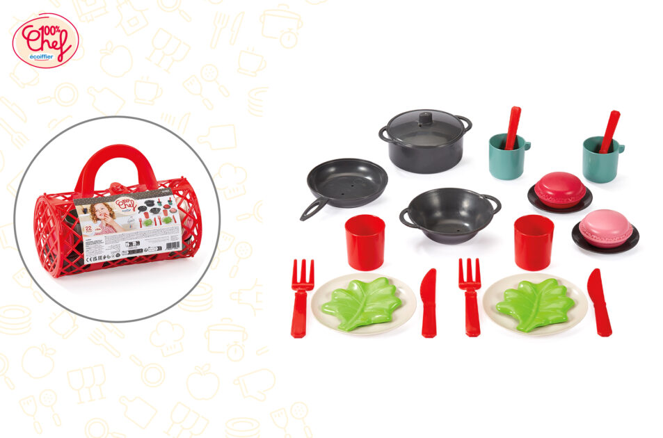- Περιλαμβάνει: 1 κατσαρόλα, 1 τηγάνι, 1 μπολ σαλάτας, 2 πιάτα, 2 πιάτα επιδόρπιου, 2 ποτήρια, 2 κούπες, 2 σετ μαχαιροπίρουνα, 2 φύλλα σαλάτας, 2 μακαρόν