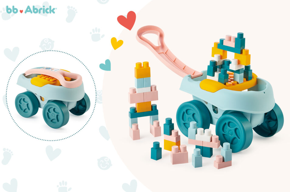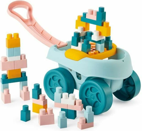 Το καρότσι περιλαμβάνει 1 βάση παιχνιδιού και 40 μεγάλα τουβλάκια στοίβαξης, προσφέροντας αμέτρητους συνδυασμούς κατασκευών και ώρες διασκέδασης. Ο έξυπνος σχεδιασμός του επιτρέπει την εύκολη αποθήκευση όλων των κομματιών στο εσωτερικό, διατηρώντας τον χώρο οργανωμένο μετά το παιχνίδι.