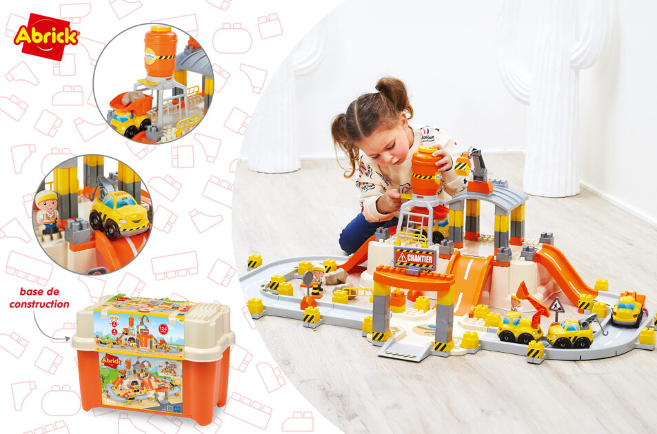 Ζήστε τον ενθουσιασμό των μεγάλων έργων με το Public Works Circuit In A Barrel - Abrick, όπου στο λατομείο όλα τα φορτηγά βρίσκονται σε συνεχή δράση, πηγαινοέρχονται και φορτώνουν πέτρες χρησιμοποιώντας το σιλό. Τα παιδιά μπορούν να δημιουργήσουν το δικό τους εργοτάξιο, να οργανώσουν τη μεταφορά υλικών και να αναπαραστήσουν ρεαλιστικά σενάρια κατασκευών μέσα από δημιουργικό παιχνίδι ρόλων. Το σετ ενισχύει τη φαντασία, τον συντονισμό και την κατανόηση βασικών εννοιών κατασκευής.