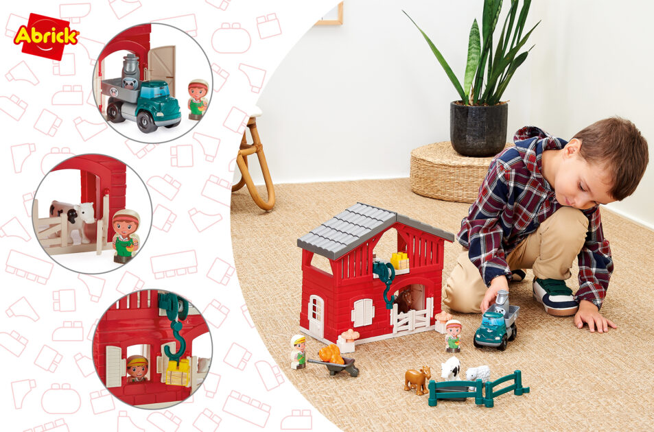 Ανακαλύψτε τη χαρά της αγροτικής ζωής με το Traditional Country Farm - Abrick, ένα σετ σχεδιασμένο για μικρούς εξερευνητές που θέλουν να γνωρίσουν την καθημερινότητα της φάρμας. Από το σπίτι του αγρότη μέχρι το φορτηγό μεταφοράς γάλακτος και τα ζώα της φάρμας, το παιδί έχει τη δυνατότητα να δημιουργήσει τις δικές του ιστορίες και να αναπτύξει τη φαντασία του μέσα από το παιχνίδι ρόλων. Το σετ προσφέρει μια ολοκληρωμένη εμπειρία παιχνιδιού που ενισχύει τη δημιουργικότητα, τον συντονισμό και την αναγνώριση αντικειμένων και ζώων της υπαίθρου.