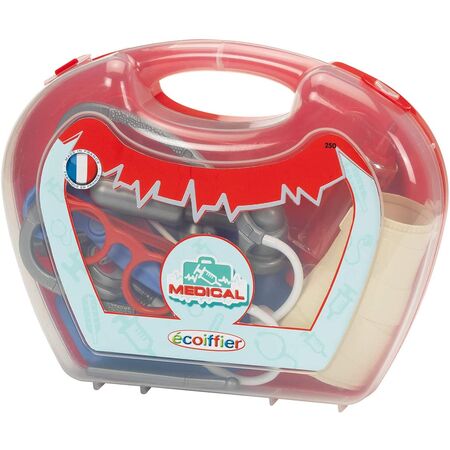 Το μεγάλο ιατρικό σετ της ECOIFFIER είναι ένα ενδιαφέρον και διασκεδαστικό παιχνίδι για παιδιά, που τους επιτρέπει να παίξουν τον ρόλο του γιατρού με άνεση. “Γεια σας, γιατρέ! Έλα γρήγορα, είναι επείγον!” Ο γιατρός φτάνει με την πλήρη βαλίτσα του για να θεραπεύσει τον μικρό ασθενή το συντομότερο δυνατό. Το σετ περιλαμβάνει στηθοσκόπιο, ψαλίδι, επιδέσμους, θερμόμετρο και όλα τα απαραίτητα για ένα παιχνίδι προσομοίωσης.
