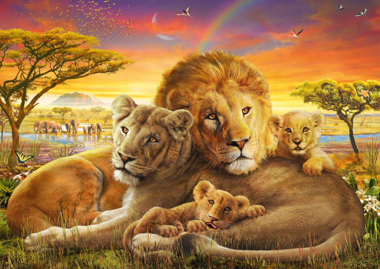 Παζλ 1000 τεμαχίων για ενήλικες. Απολαύστε την ομορφιά της άγριας ζωής μέσα από αυτό το παζλ που απεικονίζει ένα συγκινητικό ζευγάρι λιονταριών σε ένα φυσικό τοπίο. Κάθε κομμάτι έχει σχεδιαστεί με άριστη εφαρμογή, επιτρέποντας μια ομαλή και ευχάριστη εμπειρία συναρμολόγησης. Τα ζωντανά χρώματα και οι λεπτομέρειες της εικόνας καθιστούν αυτό το παζλ ιδανικό για διακόσμηση μόλις ολοκληρωθεί.