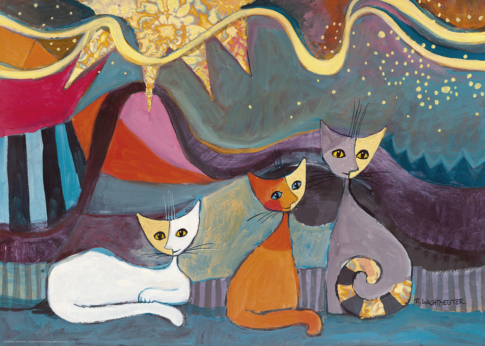 Αφεθείτε στη χαλαρή γοητεία των χαριτωμένων γατών μέσα από αυτό το παζλ 1000 τεμαχίων. Σε ένα ασυνήθιστα χρωματισμένο και κομψό περιβάλλον, χαρακτηριστικό του στυλ της Rosina Wachtmeister, οι γάτες φαίνεται να απολαμβάνουν κάθε στιγμή της μέρας τους. Το παζλ συνδυάζει ζωντανά χρώματα, μοναδικό στυλ και άψογη εφαρμογή κομματιών, προσφέροντας ώρες δημιουργικής χαλάρωσης και διασκέδασης.