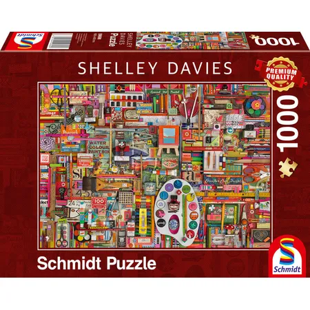 Από τη Schmidt, αυτό το παζλ 1.000 κομματιών παρουσιάζει μια πλήρη συλλογή καλλιτεχνικών υλικών, τα οποία έχουν τοποθετηθεί με μεράκι σε μια αισθητικά ευχάριστη σύνθεση, προσφέροντας μια ευχάριστη και χαλαρωτική εμπειρία παζλ.