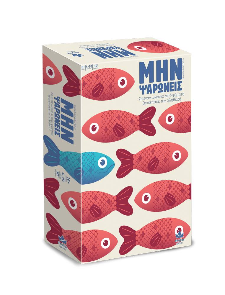 Ανακάλυψε το παιχνίδι που σε κάνει να αμφιβάλλεις για τα πάντα! Το Μην Ψαρώνεις είναι ένα απίθανο παιχνίδι παρέας γεμάτο παγίδες, γέλιο και ψαρωτικές απαντήσεις. Κάθε παίκτης προσπαθεί να ξεχωρίσει την αληθινή απάντηση ανάμεσα σε φανταστικές, που έχουν επινοήσει οι αντίπαλοι. Θα καταφέρεις να ανακαλύψεις το ψέμα ή θα… ψαρώσεις; Πρόσεξε: αν επιλέξεις τη σωστή απάντηση πολύ νωρίς, χάνεις όλους σου τους πόντους! Ιδανικό για παρέες, με γρήγορο ρυθμό και ατελείωτες στιγμές διασκέδασης και αμφιβολίας.