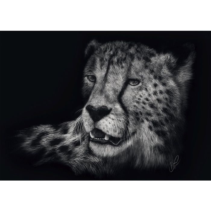 Το παζλ Ashley Rader Speed-Cheetah, The Epitome Of Grace παρουσιάζει τα ζωντανά και εκλεπτυσμένα μοτίβα ζώων σε ασπρόμαυρο φόντο της Ashley Rader, η οποία ζει στην Atlanta, ΗΠΑ και ειδικεύεται σε ρεαλιστικούς πίνακες ζώων. Τα ταξίδια της ως παιδί και ενήλικας αποτελούν πηγή της μοναδικότητας και της πολυπλοκότητας των έργων της. Στον καμβά, ζωγραφίζει κάθε τρίχα του ζώου ξεχωριστά, δημιουργώντας μια υφή γούνας από λεπτά στρώματα. Με αυτή τη σχολαστική προσέγγιση, η Ashley Rader επιδιώκει να δημιουργήσει στενή σύνδεση με τα θέματα της και να εκφράσει βαθιά εκτίμηση για τον κόσμο των ζώων. Οι σκοτεινές και απλές συνθέσεις αναδεικνύουν την ομορφιά και την χάρη των ζώων στο μέγιστο.