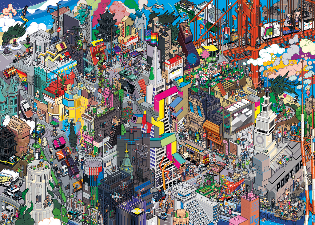 Αν επισκεφθείτε το San Francisco, βεβαιωθείτε ότι θα βρείτε τον Blockbob εκεί! Όχι μόνο αυτός ο εικονικός pixel χαρακτήρας, αλλά και πολλά άλλα χαρακτηριστικά της πόλης ξεδιπλώνονται σε αυτή τη διασκεδαστική και ζωντανή σκηνή που συνδυάζει pixel τέχνη και αστικό τοπίο. Κάθε κομμάτι σας προσκαλεί να ανακαλύψετε την πόλη και τους χαρακτήρες της με λεπτομέρεια και ακρίβεια.