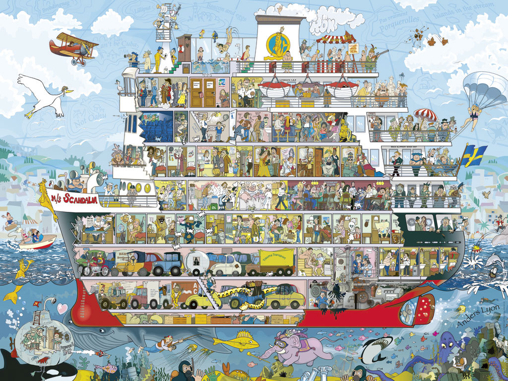 Τα κρουαζιερόπλοια είναι γνωστά για τις πολλές τους εκπλήξεις. Στο πλοίο του Anders Lyon, το “MS Scandalia”, υπάρχουν αμέτρητες εκπλήξεις για να ανακαλύψετε σε κάθε γωνιά! Οι λάτρεις των παζλ θα απολαύσουν τη διασκεδαστική και συναρπαστική συναρμολόγηση των 1500 κομματιών, αναδεικνύοντας τη λεπτομέρεια και το χρώμα σε κάθε σκηνή. Το παζλ ενισχύει τη συγκέντρωση, την υπομονή και την παρατηρητικότητα ενώ προσφέρει εκπαιδευτική και ψυχαγωγική εμπειρία.