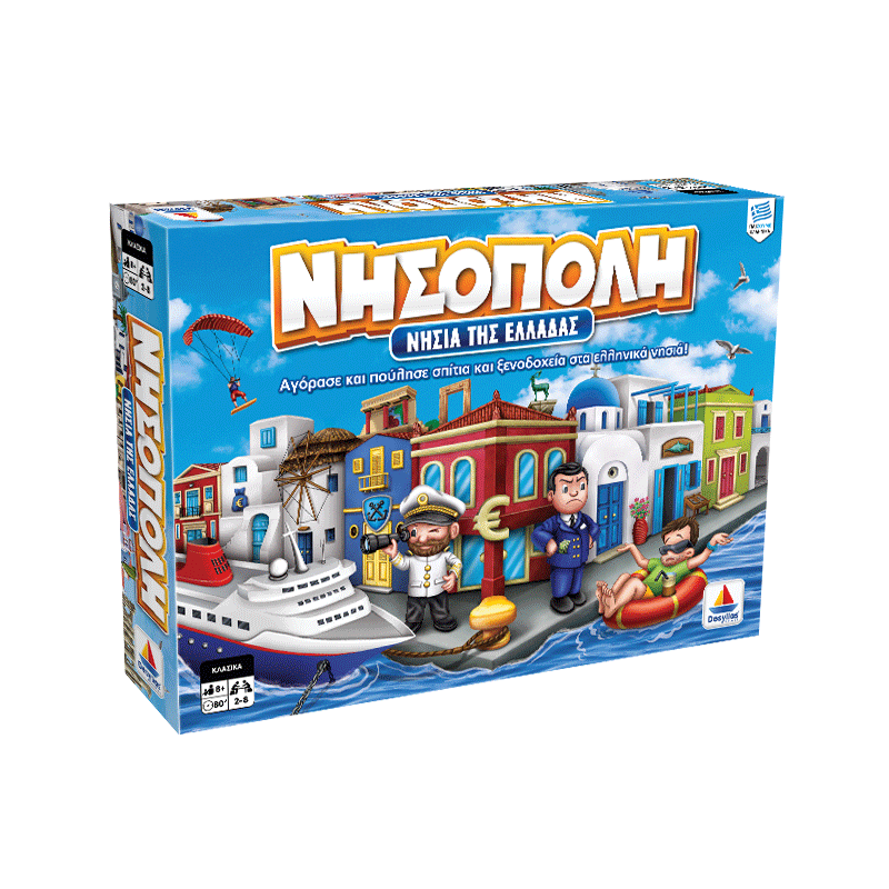 Ταξίδεψε, αγόρασε και κέρδισε στα πανέμορφα ελληνικά νησιά με το αγαπημένο επιτραπέζιο παιχνίδι Νησόπολη! Αγόρασε οικόπεδα, χτίσε σπίτια και ξενοδοχεία σε διάσημους προορισμούς όπως η Κρήτη, Ρόδος, Κέρκυρα, Σάμος, Μήλος και Σαντορίνη.