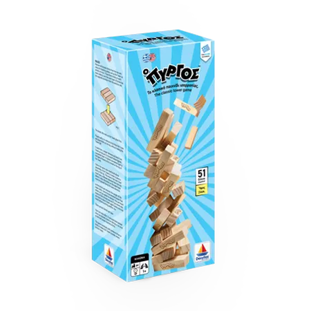 Το αγαπημένο παιχνίδι ισορροπίας μικρών και μεγάλων, τώρα διαθέσιμο με εξαιρετικής ποιότητας ξύλινα τουβλάκια! Κάθε τουβλάκι είναι χαραγμένο με το λογότυπο του παιχνιδιού, προσφέροντας μοναδική αισθητική και αντοχή. Δοκίμασε την επιδεξιότητα και τη στρατηγική σου χωρίς να ρίξεις τον πύργο! Με οδηγίες στα Ελληνικά και Αγγλικά, είναι ιδανικό για σπίτι, σχολείο ή διακοπές. Διασκέδαση και αγωνία για όλη την παρέα, σε εξαιρετική τιμή!