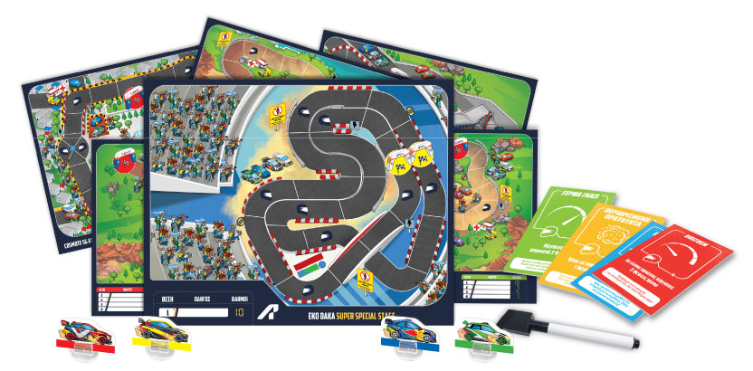 - Περιλαμβάνει: πίστα αγώνα, κάρτες, ζάρι, πιόνια & έντυπο οδηγιών
