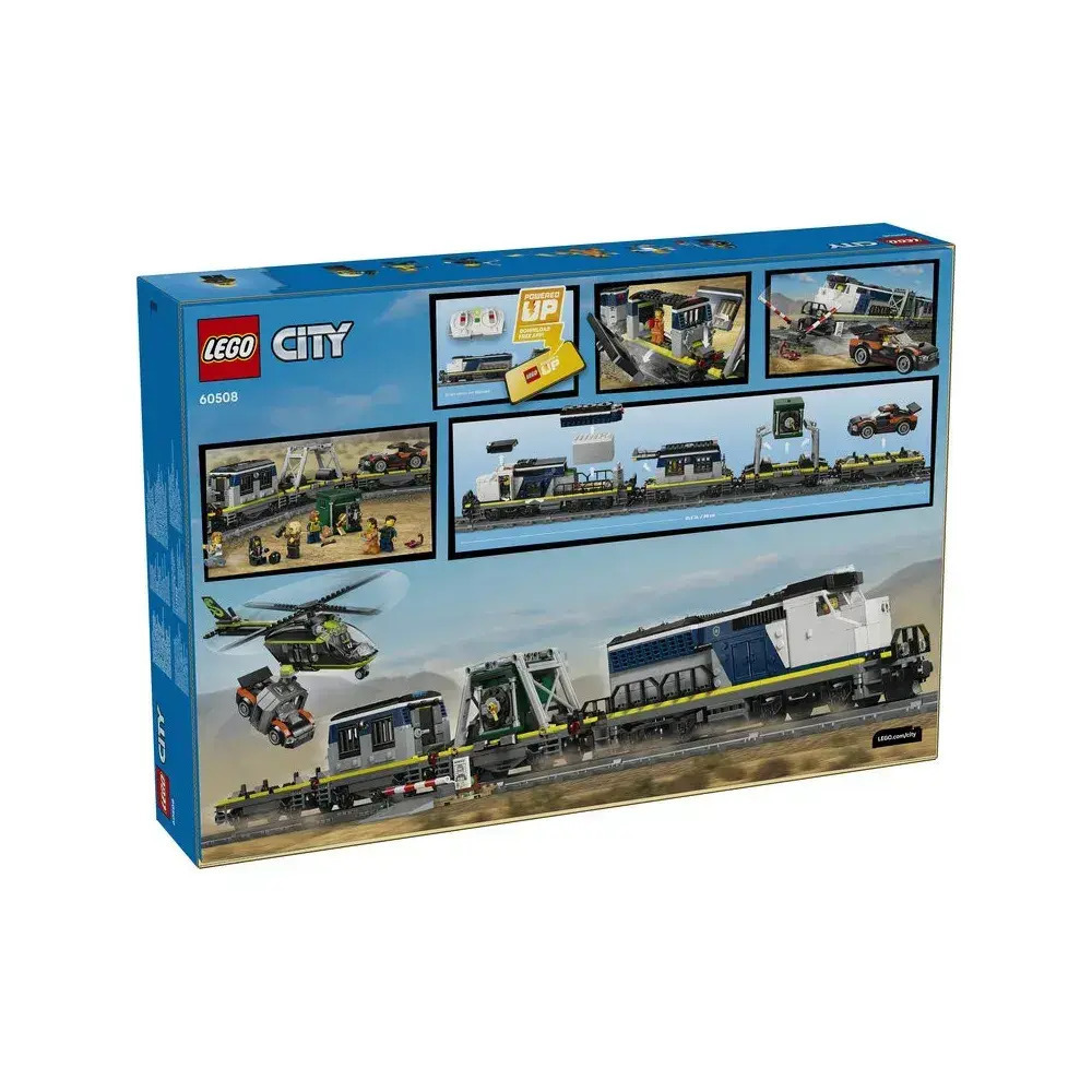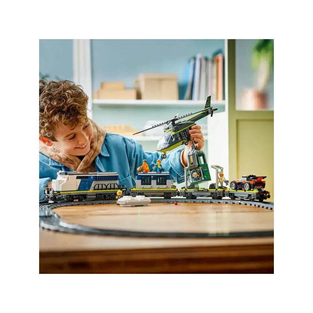 Επιβιβαστείτε για ασταμάτητη δράση με το σετ παιχνιδιού LEGO City Police Train Heist (60508) για ηλικίες 7 ετών και άνω. Αυτό το ηλεκτρικό τρένο Powered Up για παιδιά περιλαμβάνει μια λειτουργική μηχανή τρένου και 3 επίπεδες φορτάμαξες που μεταφέρουν ένα κελί φυλακής, ένα χρηματοκιβώτιο τράπεζας και ένα αγωνιστικό αυτοκίνητο. Το σετ περιλαμβάνει μια οβάλ σιδηροδρομική τροχιά, μια διασταύρωση και ένα κομμάτι τροχιάς για την επαναφορά του τρένου στις ράγες. Απλώς προσθέστε το μοντέλο ελικοπτέρου με τη λειτουργική αρπάγη και τις μίνι φιγούρες ντετέκτιβ, αστυνομικού, μηχανοδηγού και 3 κακοποιών για ευρηματικές περιπέτειες με ληστείες τρένου. Αυτό το σετ τρένου είναι υπέροχη έκπληξη ή δώρο γενεθλίων για 7χρονα αγόρια και κορίτσια που λατρεύουν τα μοντέλα τρένων και τις LEGO κατασκευές. Προσθέστε αυτό το σετ σε άλλα (πωλούνται χωριστά) από τη σειρά LEGO City για περισσότερες συναρπαστικές περιπέτειες. Με αυτό το σετ παιχνιδιού τρένου LEGO City με αστυνομικό τρένο, τα παιδιά μπορούν να απολαύσουν μια απλή κατασκευή στην εφαρμογή LEGO Builder, ζουμάροντας και περιστρέφοντας με 3D οδηγίες, και αποθηκεύοντας και παρακολουθώντας την πρόοδο ενώ κατασκευάζουν. Το σετ περιέχει 1.313 τεμάχια.