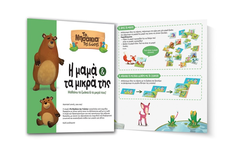 Μάθε τα ζώα και τα μικρά τους μέσα από παιχνίδι και εξερεύνηση! Το εκπαιδευτικό σετ «Τα Νησάκια της Γνώσης™ – Η Μαμά και τα μικρά της» βοηθά τα παιδιά να αναγνωρίσουν τα ζώα και τα μικρά τους, να αναπτύξουν παρατηρητικότητα και να εμπλουτίσουν το λεξιλόγιό τους. Τα παιδιά μπορούν να ταιριάξουν τα μικρά ζωάκια με τις μαμάδες τους, να φτιάξουν το μεγάλο δέντρο της γνώσης και να παίξουν παιχνίδια μνήμης και παρατηρητικότητας, ενώ αληθινές φωτογραφίες ζώων φέρνουν τον κόσμο της φύσης πιο κοντά. Το παιχνίδι ενισχύει τη λογική σκέψη, τη γλωσσική ικανότητα και τη γνωστική περιέργεια.