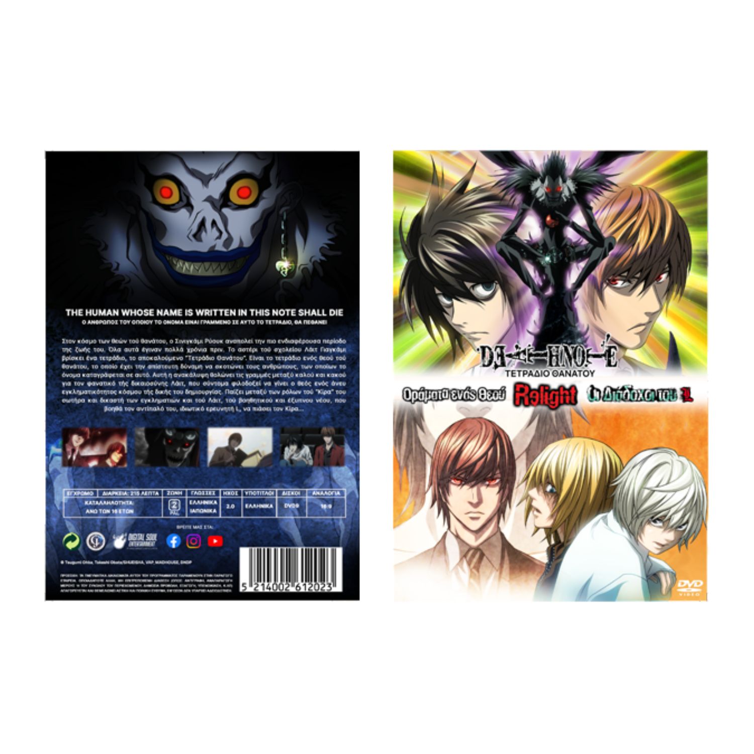 Όλη η ιστορία τής ιαπωνικής σειράς “Τετράδιο Θανάτου” συμπυκνωμένη σε δύο μέρη και με επί πλέον σκηνές σε 2 δίσκους DVD.
