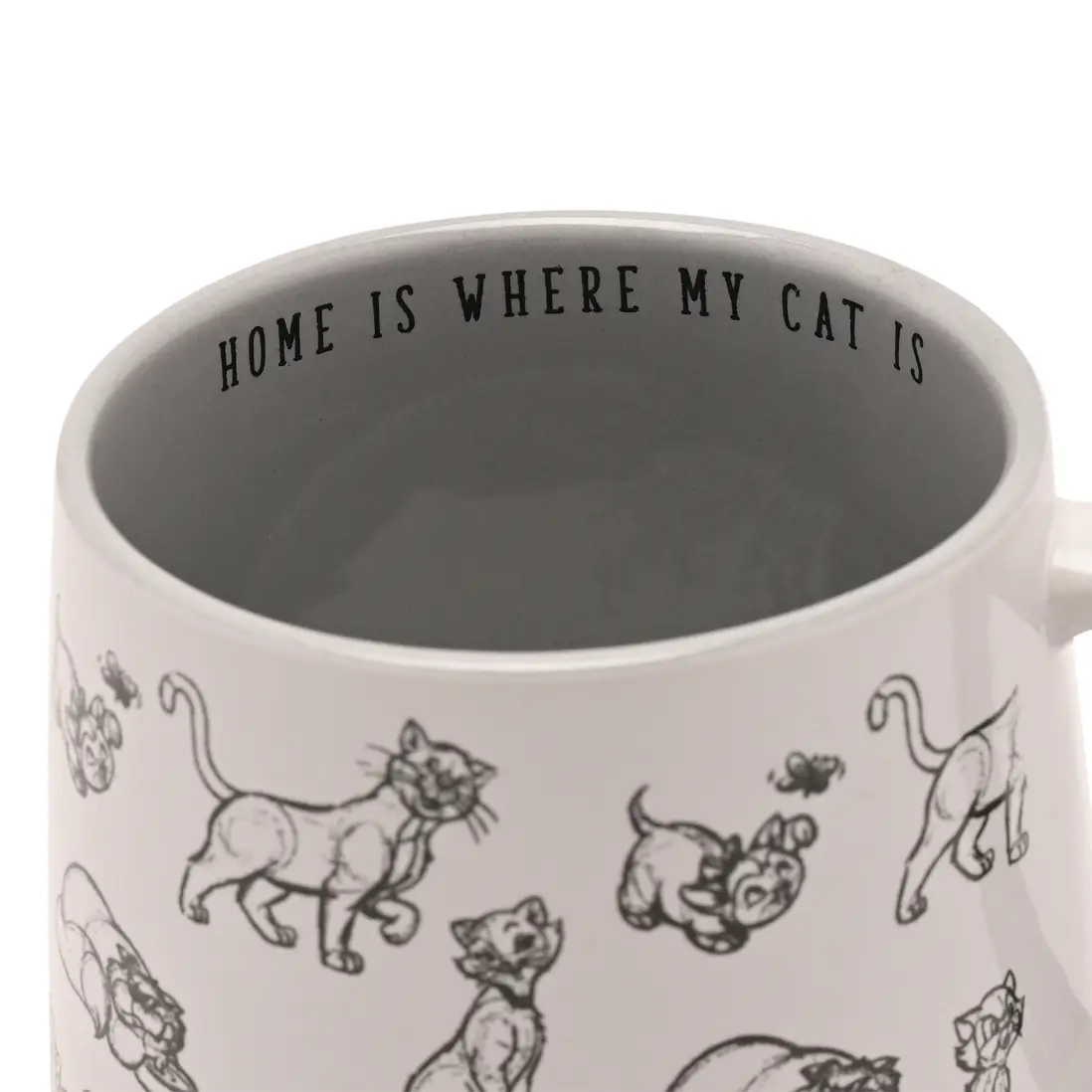 Απολαύστε την μαγεία της Disney με αυτή την επίσημα αδειοδοτημένη κούπα για γάτες από κεραμικό. Το σχέδιο παρουσιάζει δημοφιλείς χαρακτήρες γάτων της Disney σε μαύρο σκίτσο, συνοδευόμενο από την αγαπητική φράση “Home is where my cat is” στο εσωτερικό της κούπας. Ο κομψός, ελαφρώς κωνικός σχεδιασμός και ο ευρύχωρος όγκος την καθιστούν ιδανική για καφέ, τσάι ή ζεστή σοκολάτα, προσθέτοντας παιχνιδιάρικη και νοσταλγική νότα στην καθημερινότητά σας.