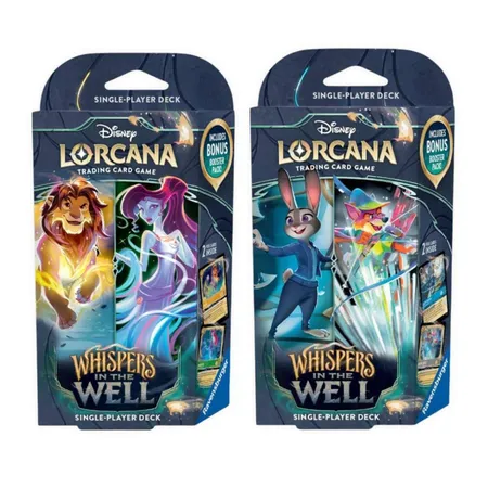 Το Disney Lorcana TCG Chapter 10 Whispers In The Well Starter Deck είναι ο ιδανικός τρόπος για να ξεκινήσετε το παιχνίδι, καθώς περιέχει ένα προκατασκευασμένο deck 60 καρτών, σχεδιασμένο και δοκιμασμένο από την Team Lorcana, προσφέροντας μια ισορροπημένη και άμεσα playable εμπειρία. Αν είστε νέοι στα trading card games ή θέλετε να μπείτε στο Disney Lorcana με τον πιο εύκολο και σωστό τρόπο, αυτό το Starter Deck αποτελεί την τέλεια επιλογή.