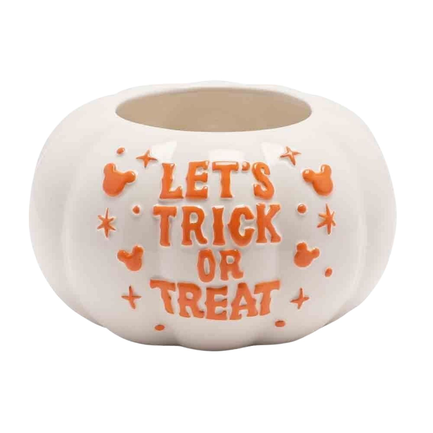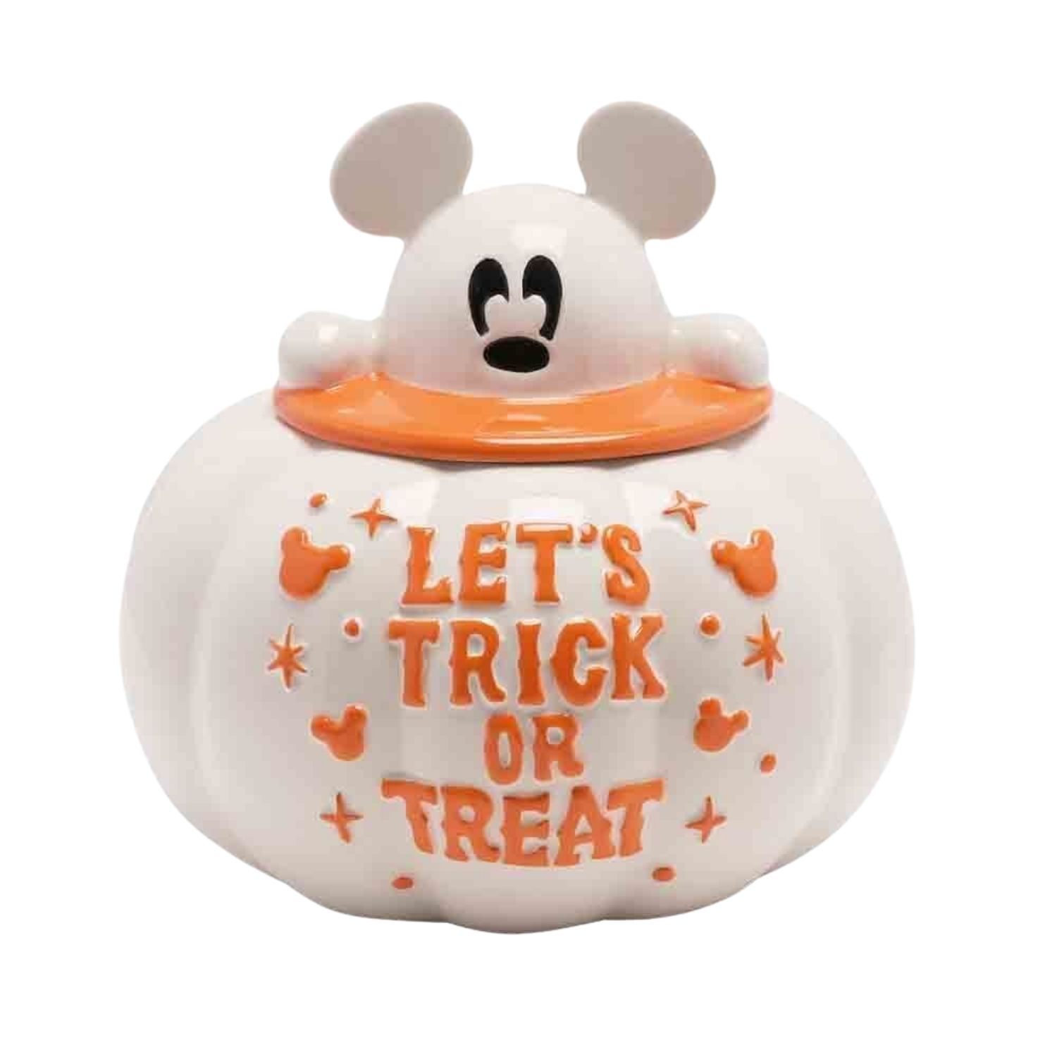 Ανακαλύψτε το μαγευτικό βαζάκι Disney Mickey Ghost Treat, ιδανικό για τη διακόσμηση του σπιτιού σας αυτή την Halloween περίοδο, αλλά με τη διαχρονική μαγεία του Disney. Το λευκό κεραμικό βάζο έρχεται σε σχέδιο κολοκύθας, με καπάκι σε σχήμα 3D κεφαλής του Mickey και γυαλιστερή φινίρισμα. Το λεκτικό "Let's Trick or Treat" σε πορτοκαλί χρώμα συμπληρώνει την όμορφη διακόσμηση του βάζου, το οποίο αποπνέει μία ατμόσφαιρα γεμάτη διασκέδαση και μαγεία.