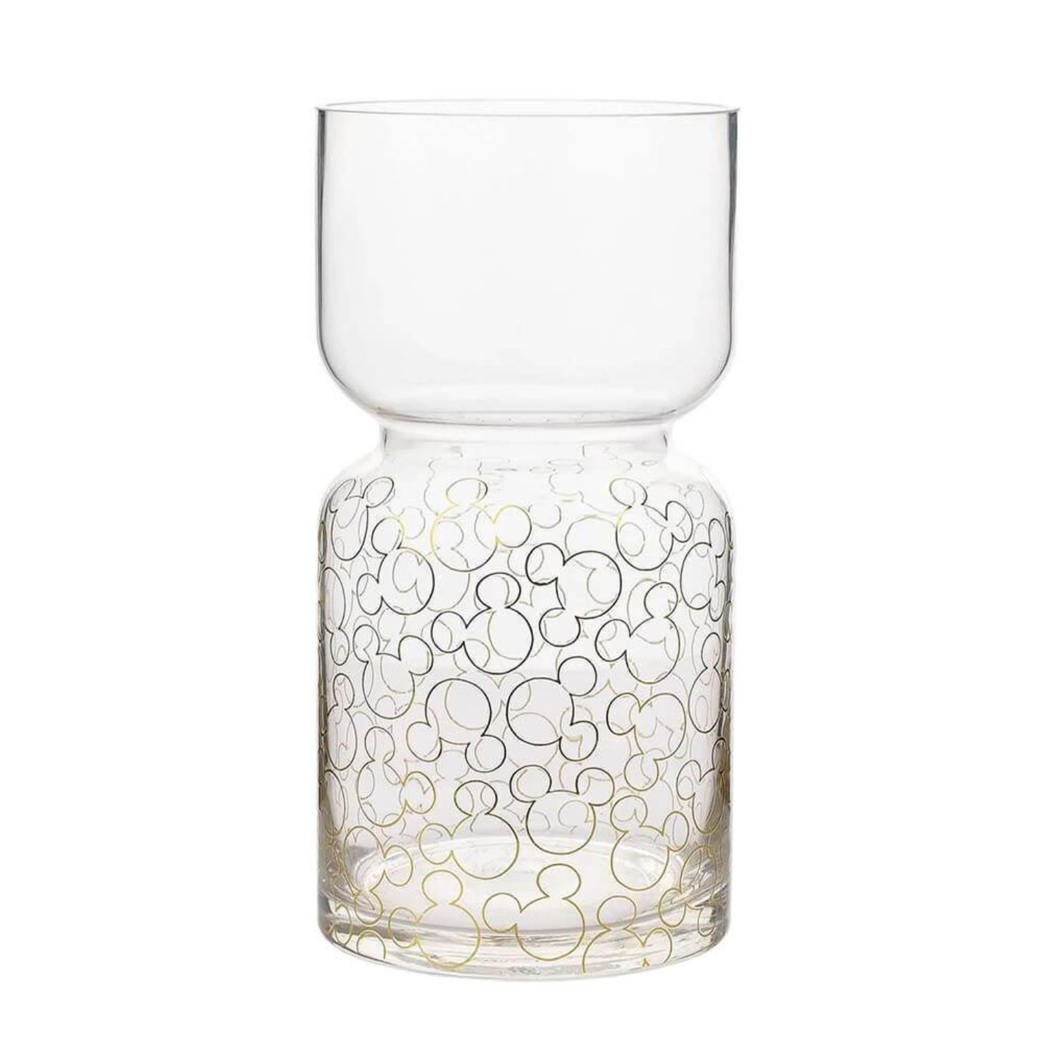 Το μεγάλο, δίχωρο κυλινδρικό βάζο από διάφανο γυαλί διαθέτει υπέροχο σχέδιο κεφαλής Mickey σε μαύρο και χρυσό χρώμα. Με ευρύ άνοιγμα, είναι ιδανικό για να τοποθετήσετε εντυπωσιακές ανθοσυνθέσεις.