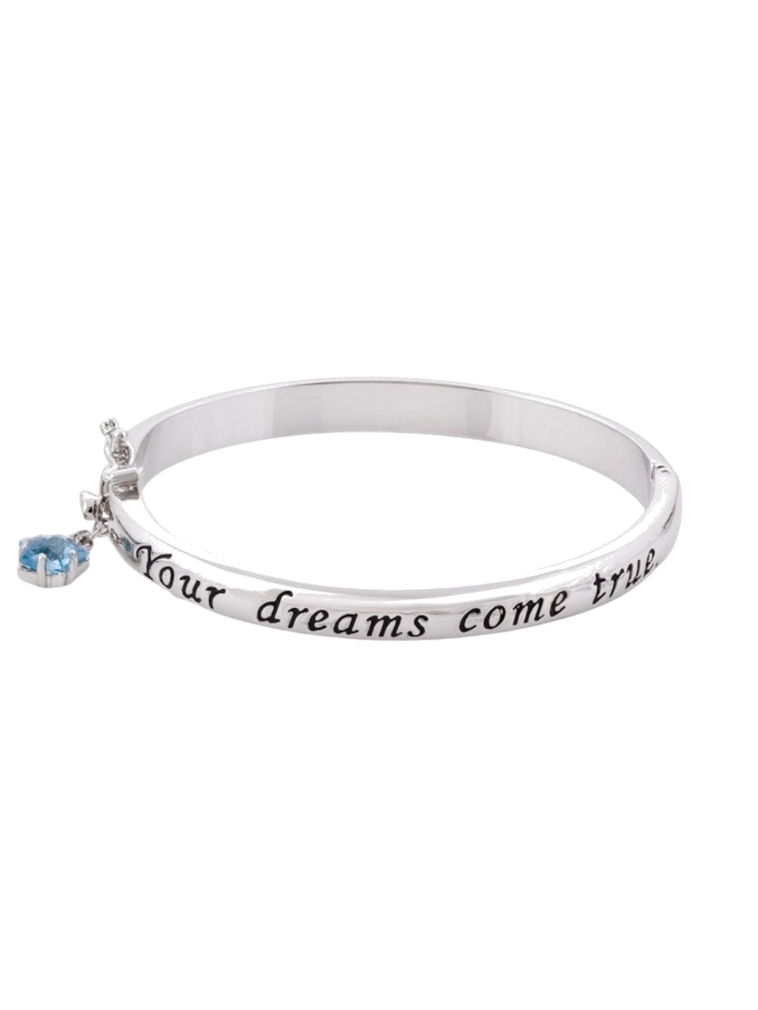 This delightful bangle is one for all the dreamers out there. Based on the inspiring and beautiful lyrics sung to us by Jiminy Cricket, this piece is the perfect reminder to never stop dreaming. - Officially licensed - Crafted with 14kt white gold-plating - 65mm x 58mm - Imported