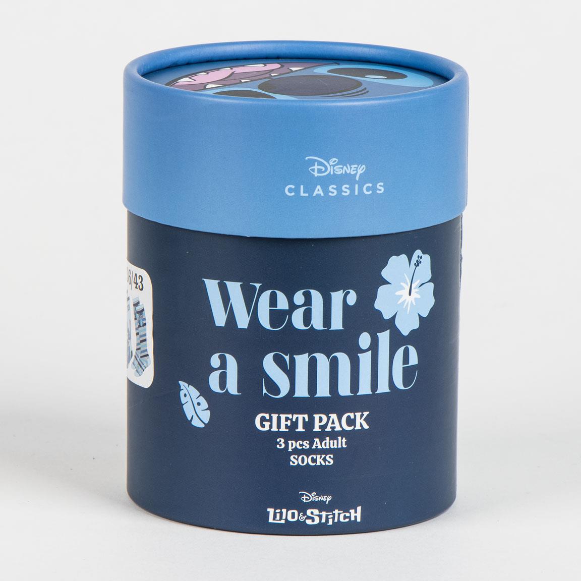 Το σετ Κάλτσες Disney Stitch 3Pieces Set περιλαμβάνει τρία ζευγάρια καλτσών με επίσημα σχέδια εμπνευσμένα από τον Stitch, σχεδιασμένα για καθημερινή άνεση και σταθερή εφαρμογή. Κάθε ζευγάρι διαθέτει διαφορετικό σχέδιο, προσφέροντας ποικιλία και διακριτικό Disney χαρακτήρα, ενώ το one size μέγεθος καλύπτει εύρος 36–43, καθιστώντας το σετ κατάλληλο για καθημερινή χρήση ή ως πρακτικό δώρο για φίλους του Stitch.