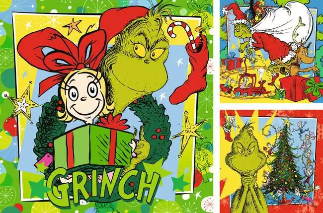 Μπες στο πνεύμα των Χριστουγέννων με το σετ τριών παζλ Disney The Grinch, κάθε ένα με 49 κομμάτια, featuring τον Grinch που έκλεψε τα Χριστούγεννα, την Cindy-Lou και τον αγαπημένο σκύλο Max. Ιδανικό για μικρούς fans του Grinch που θέλουν χρώμα, διασκέδαση και δημιουργικό παιχνίδι.