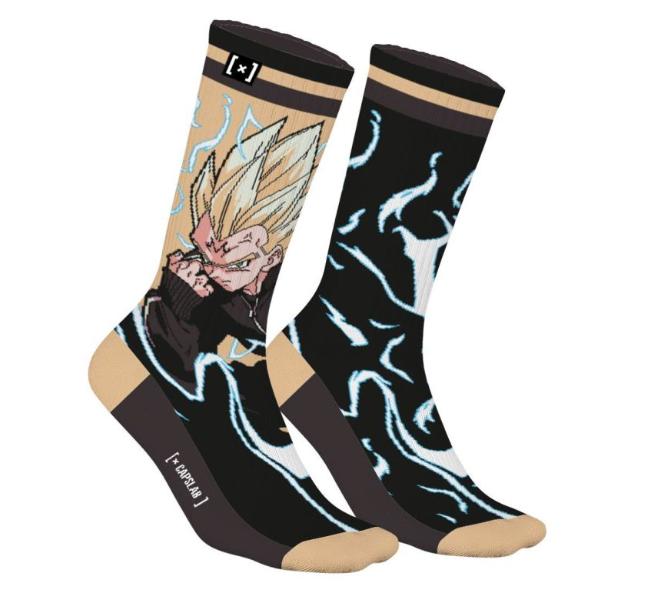 Κάντε μια τολμηρή δήλωση στυλ με αυτές τις mismatched κάλτσες από την Capslab, εμπνευσμένες από τον θρυλικό κόσμο του Dragon Ball Z. Το σχέδιο παρουσιάζει τον Vegeta, τον Πρίγκιπα των Saiyans, σε ένα εντυπωσιακό στυλ που τραβά αμέσως την προσοχή.